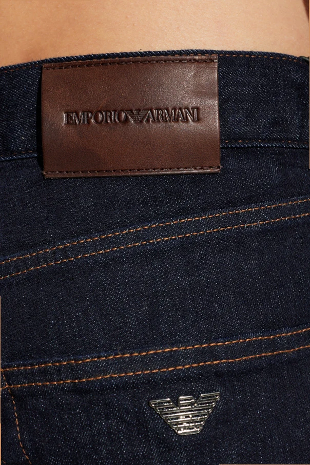 Signature elements elevate their exclusivity: a refined dark brown leather patch debossed with the Emporio Armani logo graces the back waistband, complemented by the iconic metal eagle emblem on the rear pocket. Tasteful contrasting orange stitching adds a subtle, sophisticated accent, setting these jeans apart as a hallmark of enduring Italian craftsmanship.