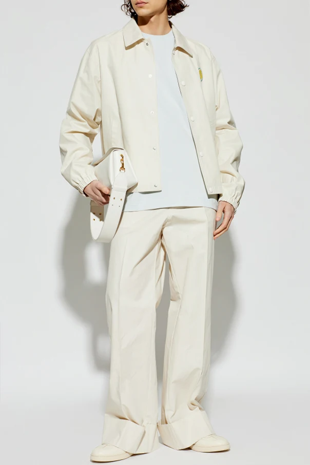 Experience refined sophistication with these cream wide-leg trousers from Bally. Meticulously tailored for the discerning gentleman, their striking silhouette features a generous, straight cut that continues seamlessly from a subtly elevated waistline. Crafted from smooth, robust cotton, the trousers offer a distinctive matte finish that gracefully maintains shape and structure.
