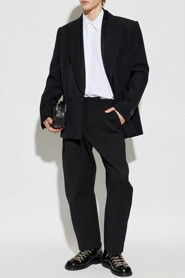 A refined geometric white embroidery discretely accentuates the cuff—a signature emblem celebrating the house’s dedication to luxury and detail. The crisp, structured collar maintains an authoritative impression, while the lack of visible pockets preserves its uncluttered formalism.