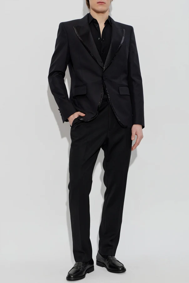 Thoughtful design details include angled front pockets, two rear pockets accented with buttons, tailored belt loops, and a single-button zip closure. Impeccable, seamless stitching reflects distinguished craftsmanship, while the crisp, streamlined profile ensures these jeans stand apart as a truly exclusive wardrobe staple.