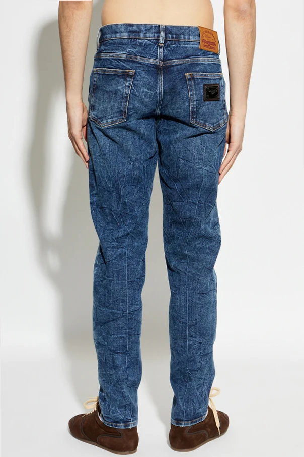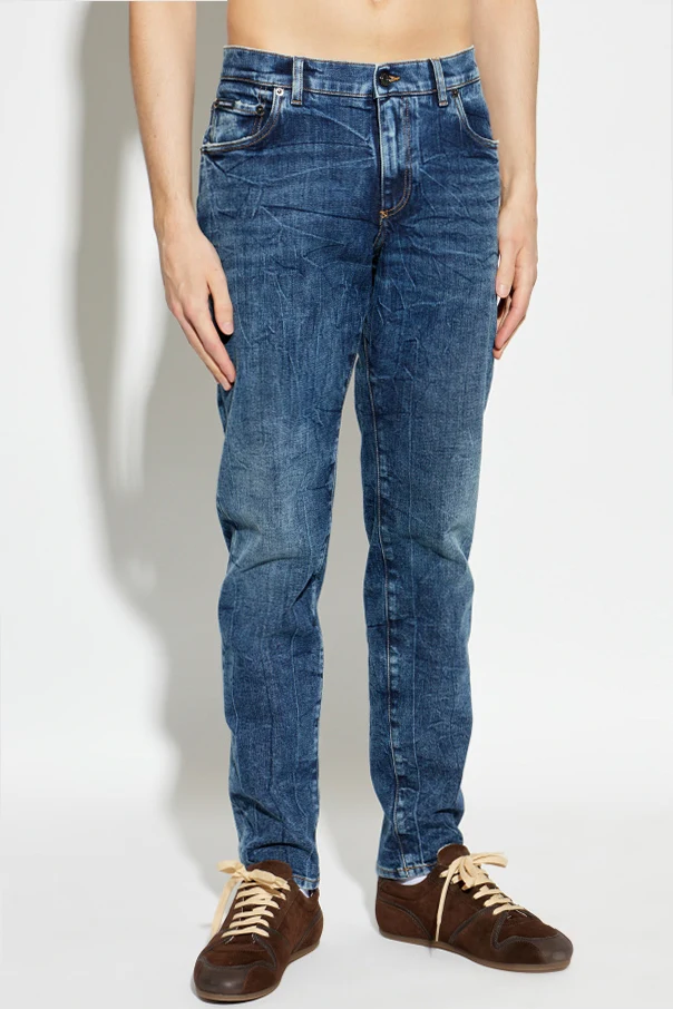 Elevate your everyday attire with these exceptional Dolce & Gabbana Slim Jeans in refined blue —a tribute to authentic Italian sophistication. Tailored in a contemporary slim, carrot fit, they are meticulously crafted from premium, heavyweight denim, offering an exquisite structure without stretch for lasting shape and opulent comfort.