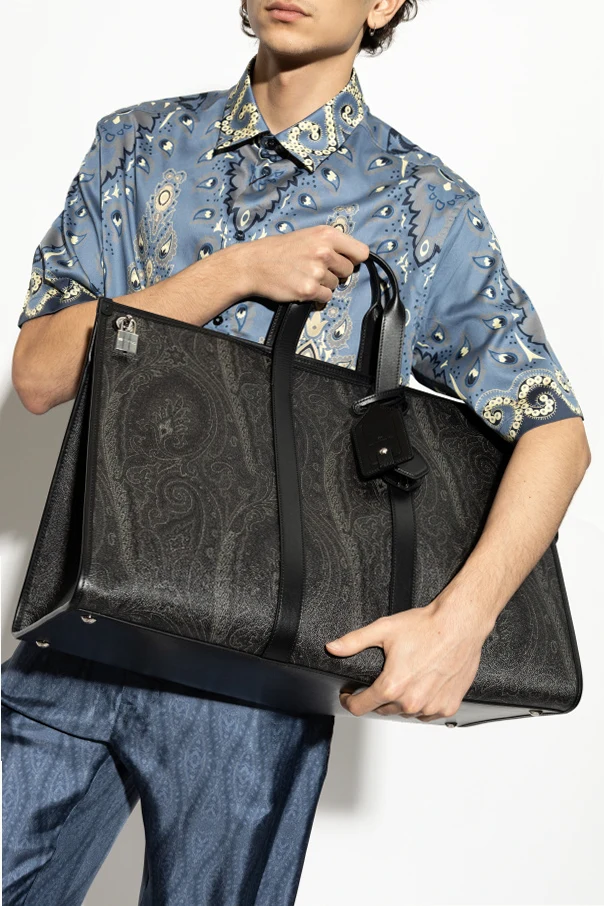 Introducing the luxurious carry-on bag from the exclusive collection of the renowned designer, Etro . This masterpiece embodies the elegance of Italian craftsmanship , seamlessly blending the opulence of paisley—a motif inspired by Indian culture—into its design.