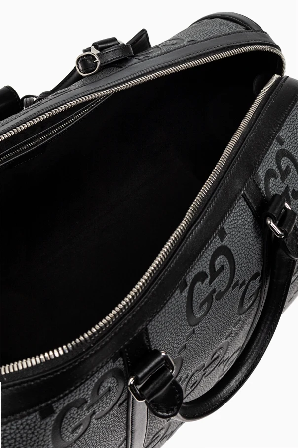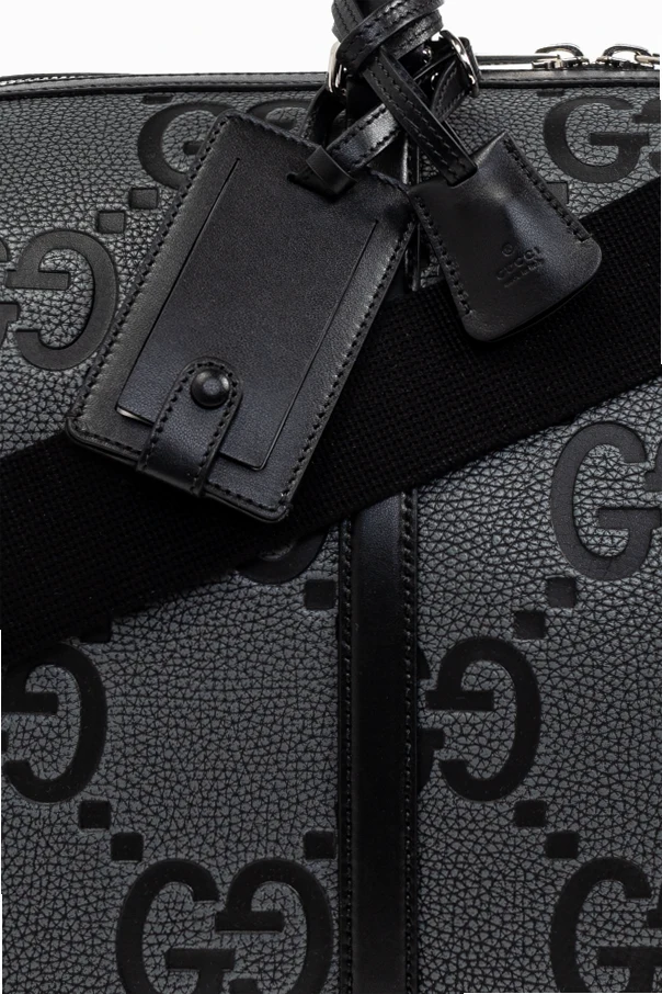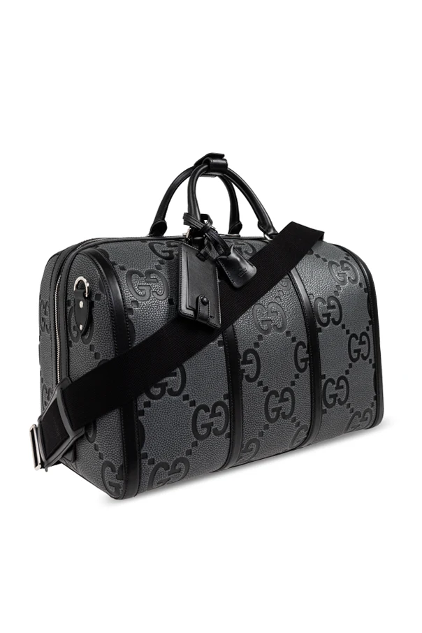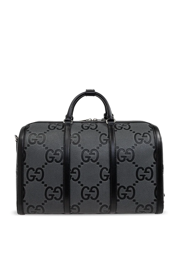 Introducing the Jumbo Small carry-on bag, a testament to Gucci's unparalleled craftsmanship and creative director's visionary design. This exquisite piece, part of an exclusive collection, is adorned with a distinctive pattern featuring the designer's iconic logo, seamlessly blending luxury with functionality.