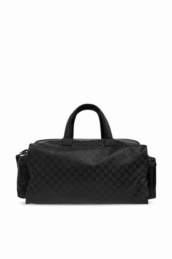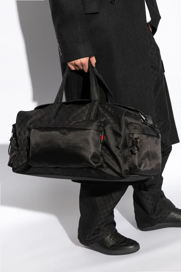 Introducing the Hand Luggage Bag from the exclusive fashion collection by Gucci. This bag epitomizes sophistication with its classic rectangular shape, accentuated by gently rounded edges. The signature "GG" pattern graces its surface, a hallmark of the designer's unparalleled style.