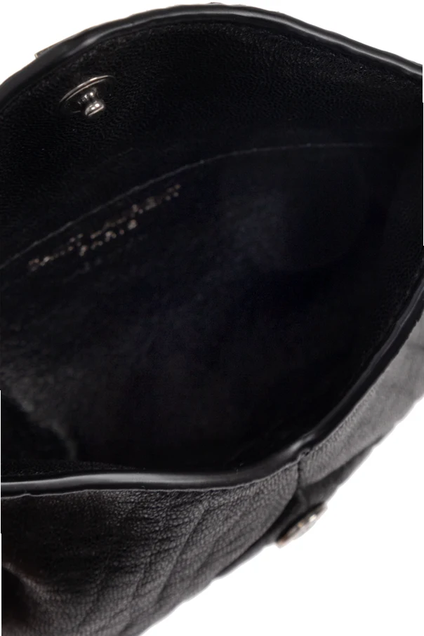 Conceived for versatility, the design is completed with a supple leather loop and polished metal clasp for carrying or securing with ease. Both an emblem of heritage and contemporary style, this accessory epitomizes the avant-garde spirit of Saint Laurent.