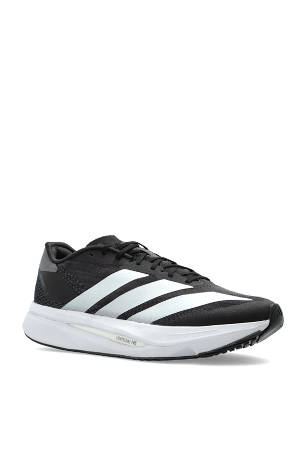 The timeless aesthetic is underscored by three distinctive, diagonal white stripes along the sides, complemented by subtle ADIZERO branding and the signature LIGHTSTRIKE inscription on the midsole. A dual-layer, lightweight rubber sole offers dynamic cushioning and agility, empowering you to chase excellence at every stride.