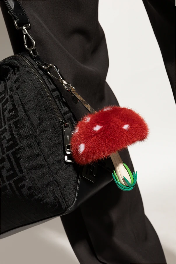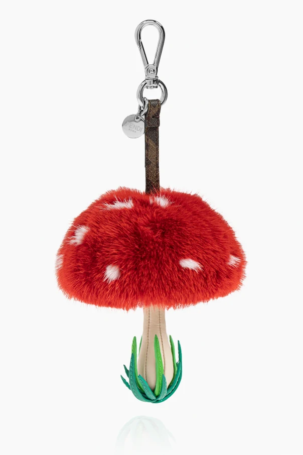 Fendi RED Keychain with a mushroom motif pendant