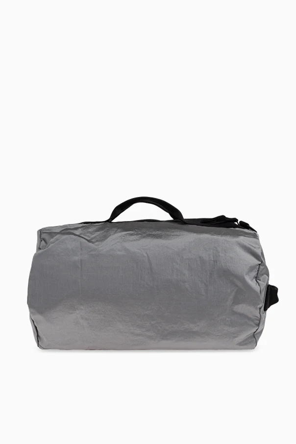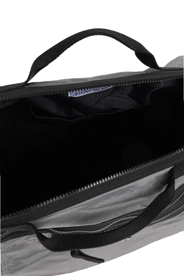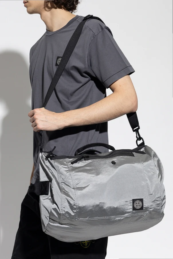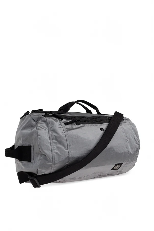 Discover elevated functionality with the Stone Island Logo-Patch Duffle Holdall in sophisticated gray. This meticulously crafted travel bag features a subtly lustrous, technical nylon exterior, offering practicality through its water-resistant finish. Its rectangular silhouette, gently rounded at the sides with a broad base, ensures both style and ample space—perfect for contemporary journeys.