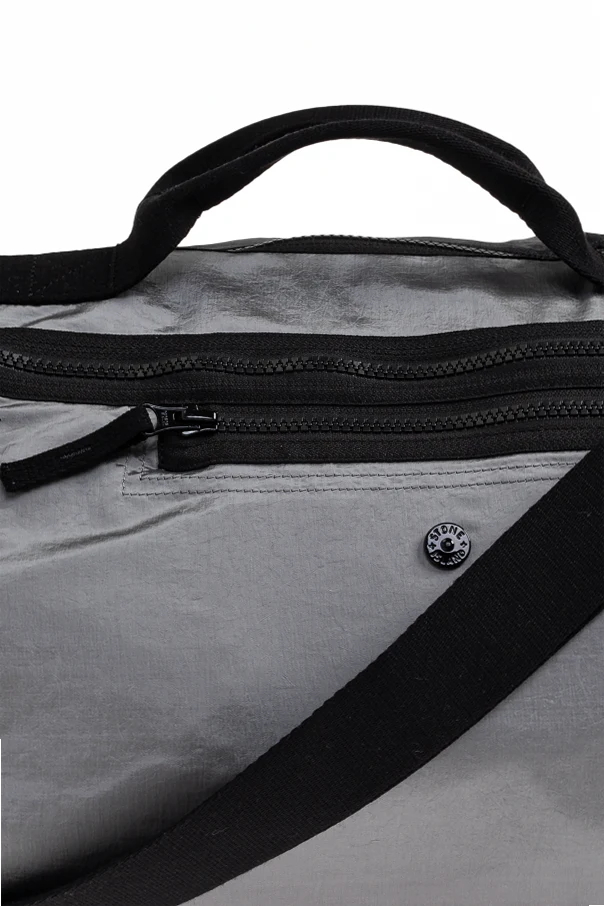 The minimalist design is accentuated by a striking black patch with a contrasting white Stone Island emblem on the front, embodying discreet Italian refinement. A robust zip secures the main compartment, while an additional front pocket—adorned with a signature metal rivet—offers effortless organization.