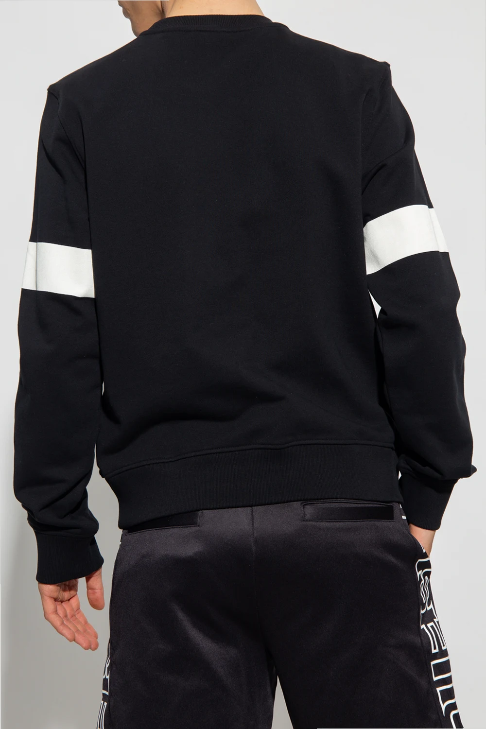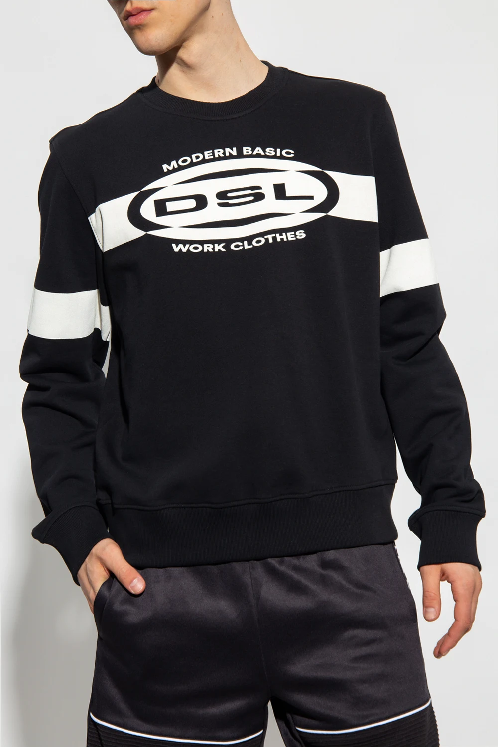 Black and cream 'S-GINN-HS2' sweatshirt from Diesel. Made of cotton, this crewneck design is enriched by a logo print and ribbed trims at the hem and cuffs.