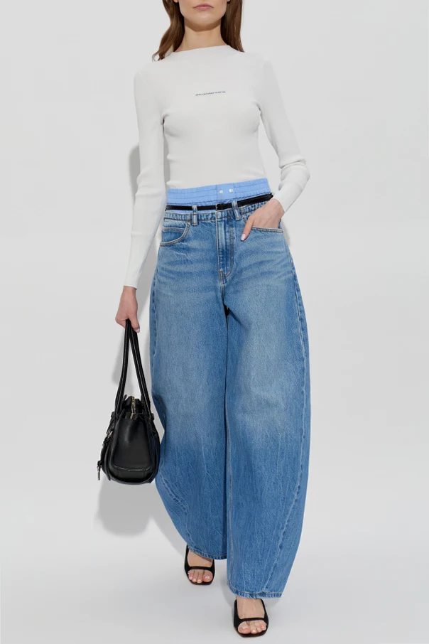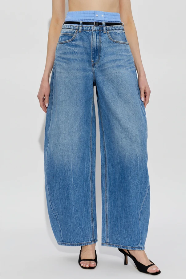 Embrace a bold expression of modern confidence with these wide-leg jeans by Alexander Wang. Rendered in a refined blue hue with subtle fading and a delicate washed effect, this piece elevates the concept of everyday denim to new heights.