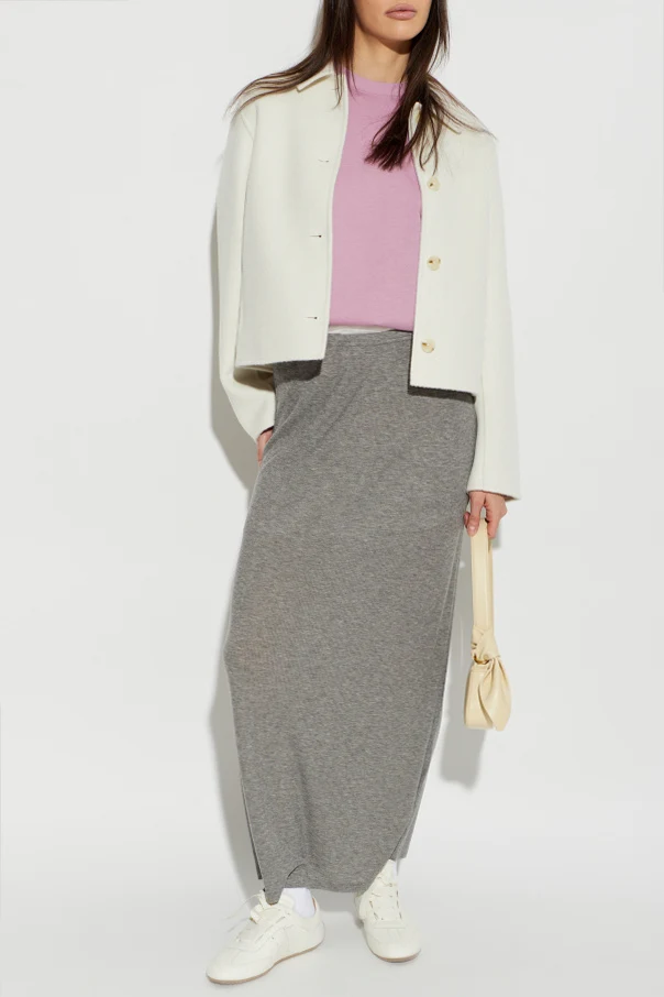Distinctive for its bold, wide, white waistband that contrasts strikingly with the skirt’s smooth black expanse, the Sadou Skirt is utterly free from visible pockets, fastenings, or branding—amplifying its timeless appeal. The blend of lyocell and wool promises both breathable comfort and exquisite warmth, making this piece an exceptional choice for refined wardrobes.