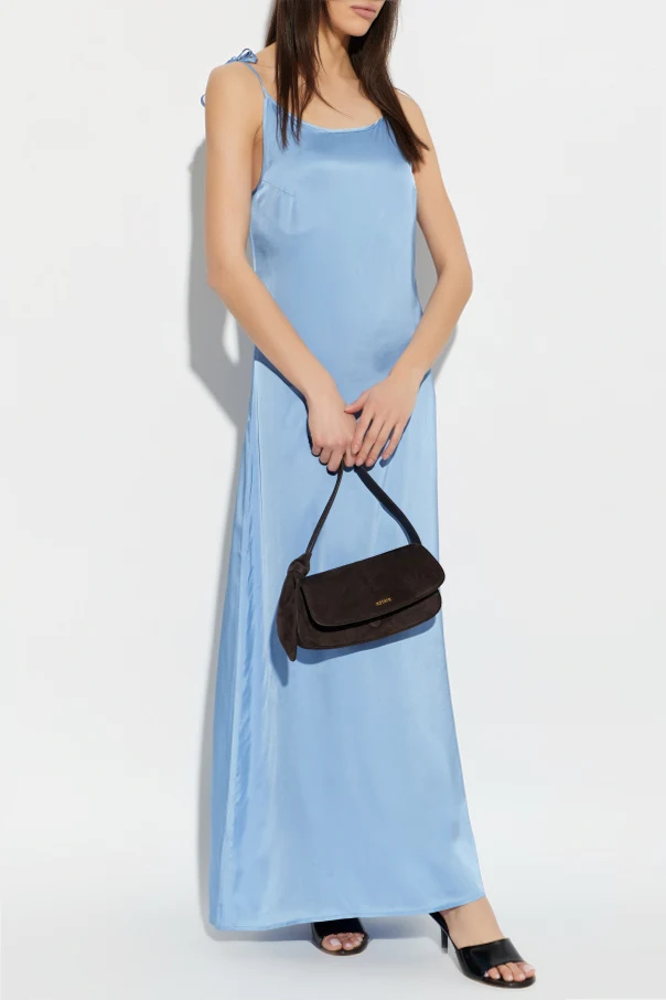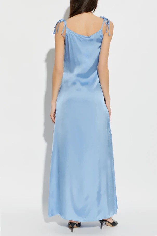 Delicate shoulder straps are artfully tied into feminine bows, their subtle intricacy a signature detail. The gentle cowl neckline—mirrored on front and back—creates a sophisticated yet effortless drape. Impeccably finished edges and seamless construction further elevate its exclusive appeal. Unembellished and pristine, this dress exudes modern luxury through its purity of form and materials.