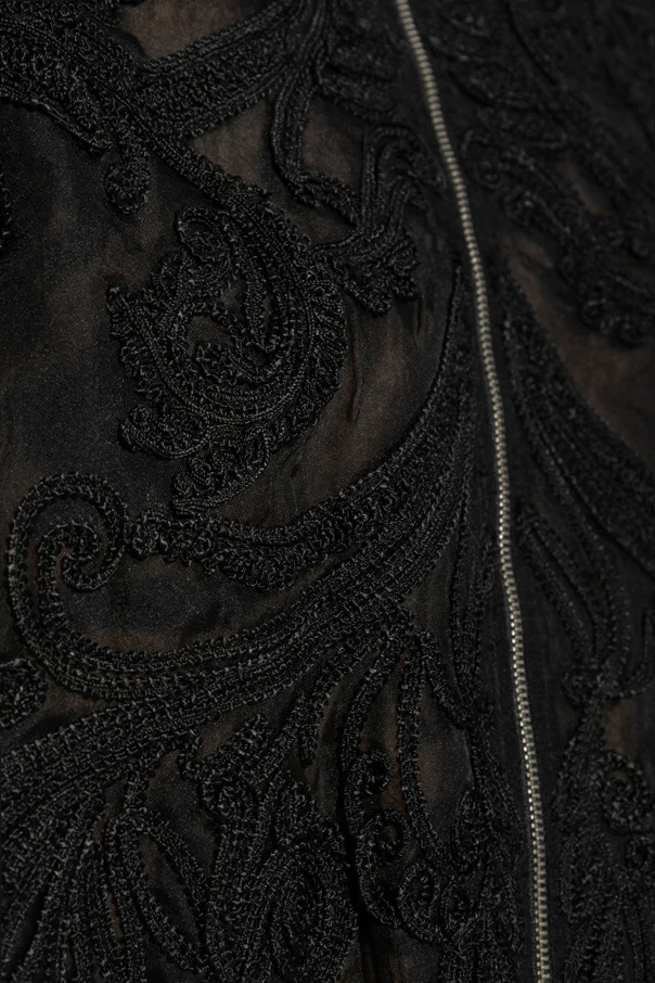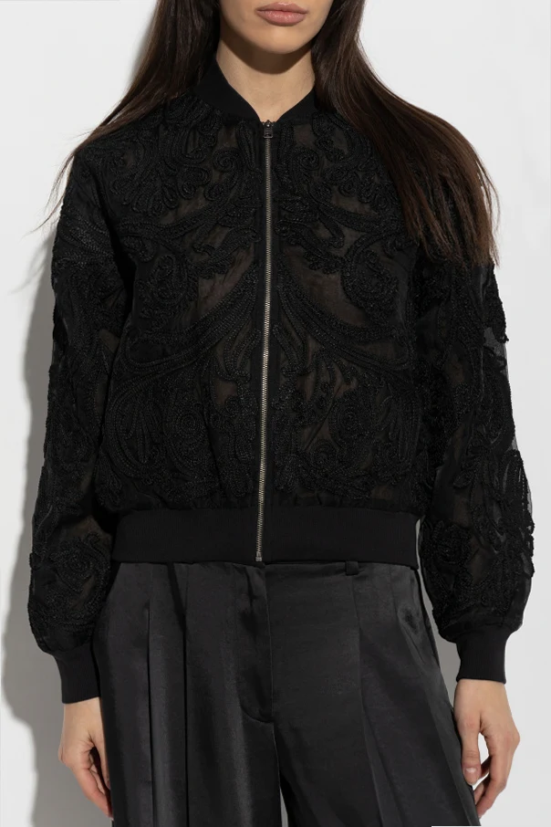 Discover the exceptional allure of the Jade Bomber Jacket by AllSaints, a renowned East London designer label celebrated for its uncompromising innovation. Cloaked in an opulent baroque-inspired embroidery , this jacket dazzles with intricate, raised motifs that intertwine botanical and abstract elements.