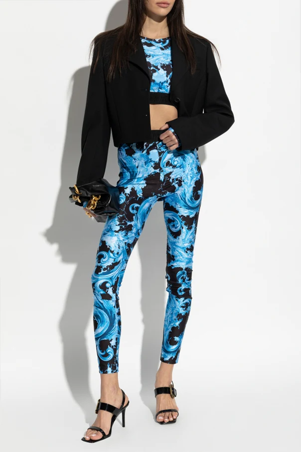 Exquisitely tailored to accentuate the female form, these Versace Jeans Couture leggings meld iconic street style with opulent high-fashion sensibility. The elevated silhouette features a fitted, ankle-length design with a high-rise waist for both sophistication and comfort.