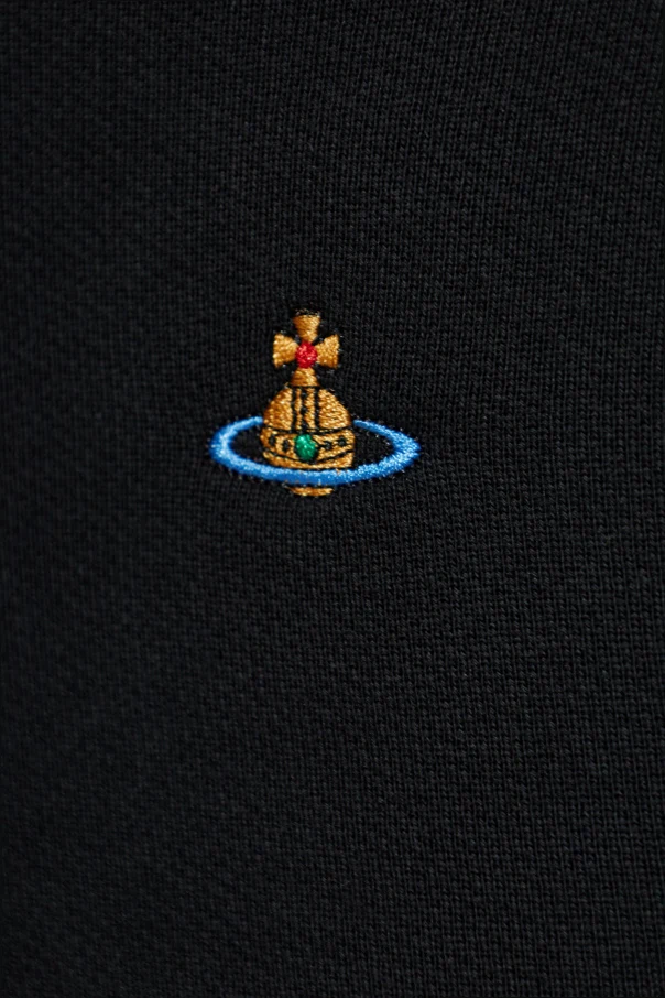A signature, multicolor embroidered designer orb emblem adorns the front just below the waist, serving as a subtle yet distinctive nod to Vivienne Westwood’s legacy of bold innovation and artistic rebellion.