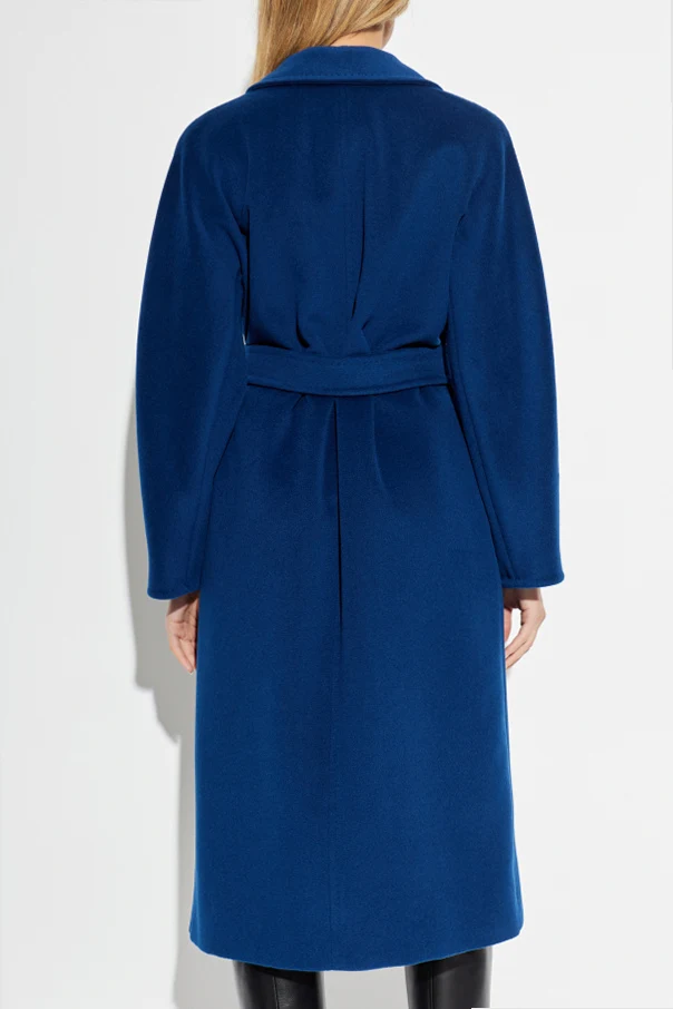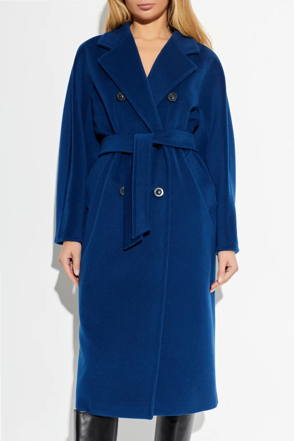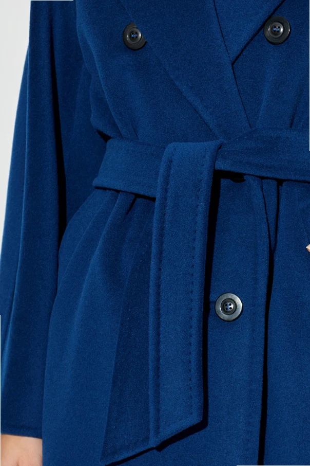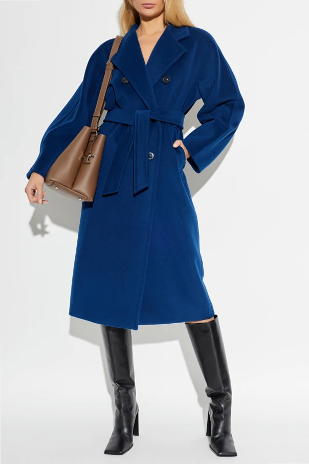 Introducing the “Madame” coat from the exclusive Max Mara collection—a masterclass in timeless elegance and Italian sophistication. Crafted from a sumptuous blend of fine wool and cashmere, this classic, long silhouette graces the figure with a subtle, tailored waist, accentuated by a generous self-tie belt. The rich black hue envelops the piece, lending it versatility and understated opulence. Sleek and unembellished, the coat showcases a double-breasted front with four lustrous black buttons, wide lapels inspired by traditional trench tailoring, and discreet side welt pockets. Thoughtfully designed, the straight sleeves and slightly dropped shoulders provide modern comfort while evoking refined poise. The interior is lined with smooth cupro, promoting exceptional comfort and breathability. Why choose this product? Expert Italian design, by Max Mara Luxurious wool and cashmere blend for warmth and softness Exquisite tailoring with a flattering, belted waist Timeless black color for effortless versatility Double-breasted closure and signature wide lapels Silky, breathable cupro lining for added comfort Discreet, functional welt pockets
