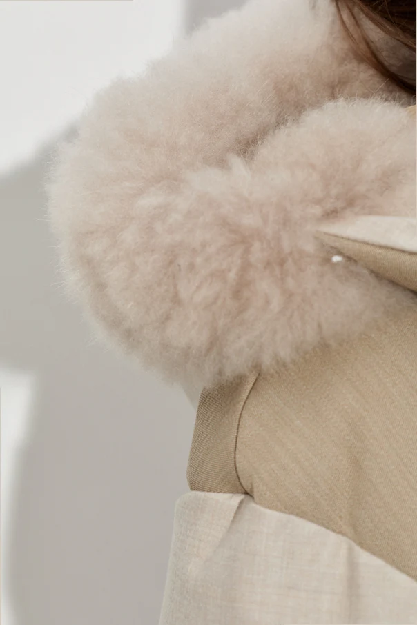 Indulge in refined winter luxury with the Arlo Vampire 3.0 Ski Jacket by Sease , a sublime expression of contemporary activewear for the discerning woman. This short, subtly cropped jacket showcases a sophisticated beige palette , rendered in a modular interplay of slightly deeper hues at the shoulders and hood, contrasted by lighter tones across the sleeves and body. Crafted from an exquisite technical blend with a luscious cashmere exterior and finished with a touch of stretch, this piece promises unrivaled comfort and remarkable shape retention. The broad hood—graced with a lavish soft fur trim—evokes effortless elegance, while a double-direction zipper with a decorative puller and gently angled pockets reflect meticulous attention to function and style. Luxuriously insulated with premium down and feather filling, this jacket ensures both warmth and plush comfort, making it indispensable for alpine pursuits or urban winter escapes. Why choose this product? Supreme warmth from premium down and feather blend Elegant cashmere outer layer with sophisticated texture Distinctive modular beige design for contemporary allure Opulent, fur-trimmed hood for added comfort and refinement Thoughtful functional details—angled pockets and decorative zipper