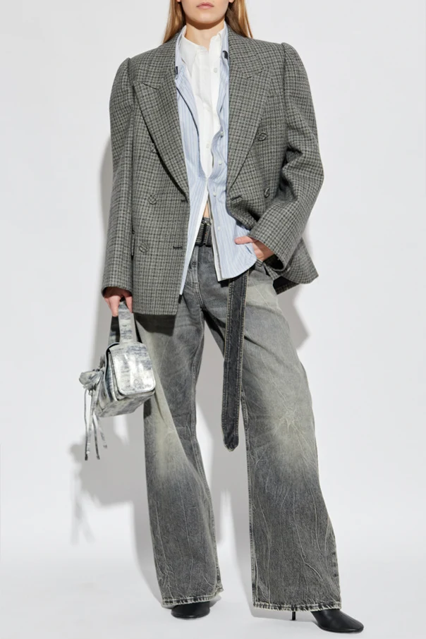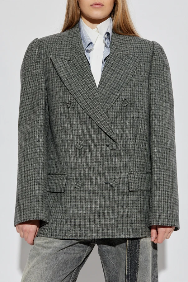 Discover the epitome of refined sophistication with this Wool Blazer by Acne Studios , an exquisite piece that encapsulates timeless elegance and contemporary Scandinavian minimalism. Expertly crafted from premium wool, the distinctive tweed weave in subtle gray check exudes understated luxury. The classic oversized silhouette is tailored with precision, showcasing a structured yet gently contoured shoulder. A double-breasted closure with six fabric-covered buttons adds depth and character, while the quietly luxurious texture highlights exceptional craftsmanship. Inspired by menswear tradition and infused with innovative design philosophy, this blazer is as versatile as it is iconic—perfect for commanding presence in any ensemble. Why choose this product? Finest wool, providing warmth and breathability Signature double-breasted closure with fabric-covered buttons Expert Scandinavian tailoring for a flawless oversized fit Unique, subtle gray tweed pattern for enduring elegance Created by the renowned Acne Studios design house