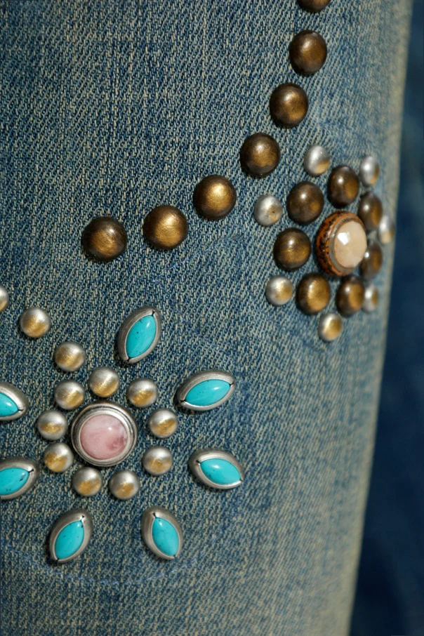 Channel refined sophistication with these flared jeans by Dsquared2, distinguished by their artfully tailored silhouette—fitted through the thigh and gracefully widening from the knee downward. Evoking the allure of vintage glamour, the washed denim radiates a subtle, lived-in sheen, enhanced by deliberate lightened accents and intricate contrast stitching. The defining feature lies in elaborate floral and rosette embroideries , lavishly accented with colorful gems and beads, creating an arresting tapestry both front and back. A discreet leather patch at the back waistband hints at the exclusive designer heritage, while the absence of overt branding maintains an understated, yet unmistakably luxe aesthetic. Crafted from a premium cotton-rich blend with a touch of stretch, these jeans promise exceptional comfort paired with enduring style—a modern homage to bold, yet elegant self-expression. Why choose this product? Signature Dsquared2 fusion of artistry and elevated casualwear Unique embellishments for a one-of-a-kind look Flattering and timeless flared cut with vintage inspiration Luxurious materials for comfort and durability Meticulous detailing and unmistakable designer refinement
