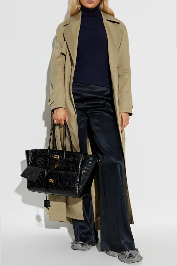 Crafted from a luxurious cotton outer layer and a smooth cupro lining, this coat ensures exceptional comfort and breathability. Signature details, such as wide lapels, shoulder epaulets, an elegant back storm shield, and adjustable cuff straps, offer both distinction and versatility. Balenciaga’s unrivaled legacy in haute couture is evident in every considered detail, making this trench an exclusive wardrobe cornerstone.