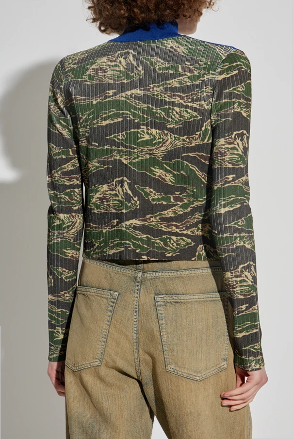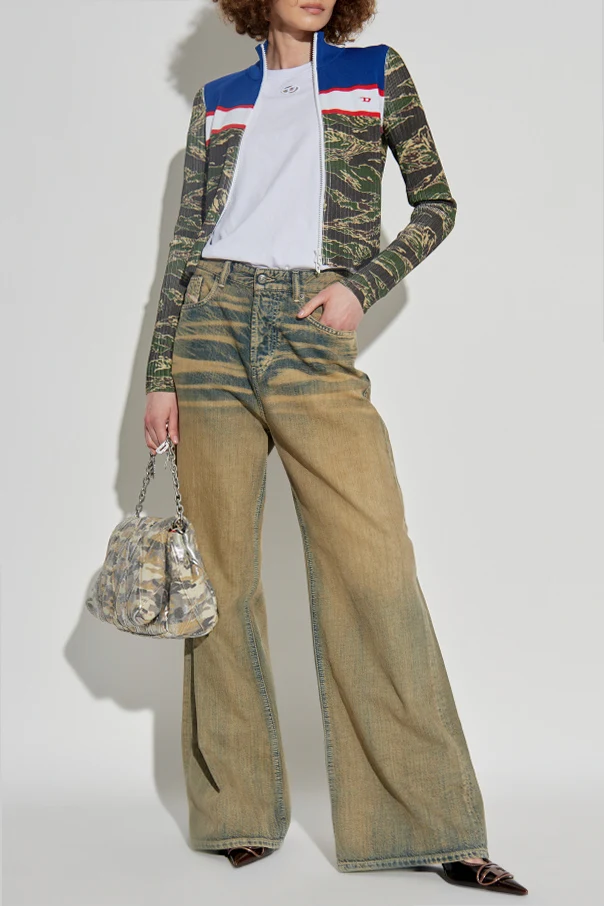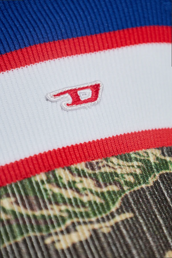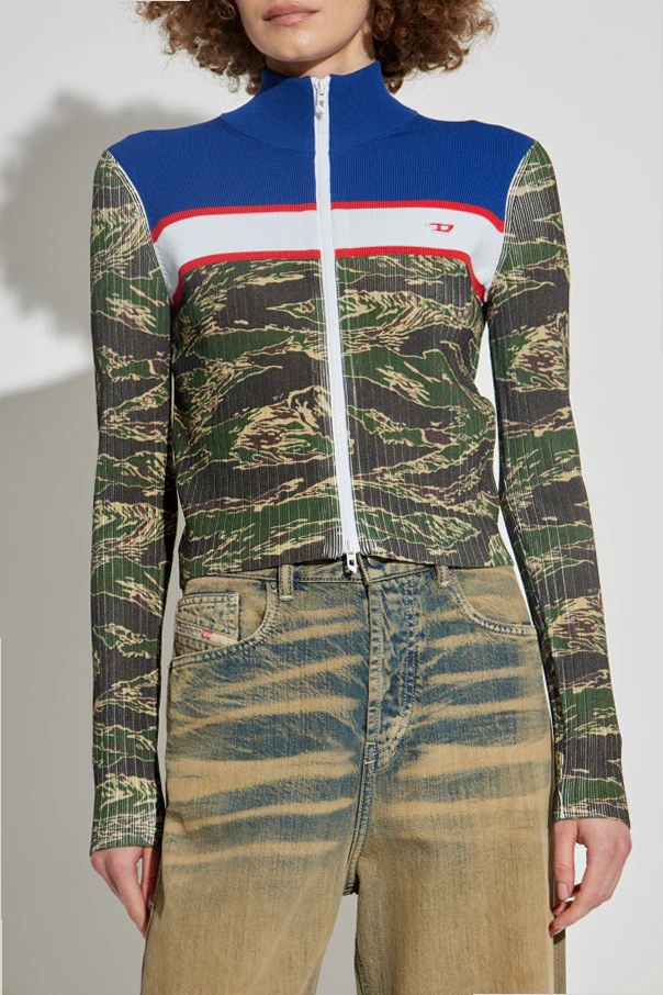 Introducing the M-CAMUT cardigan by Diesel—a striking embodiment of urban elegance and contemporary design. Distinguished by its tailored, slightly cropped silhouette, this sophisticated piece gracefully features long sleeves and a refined stand-up collar, complemented by a sleek full-length zipper. The multicolor palette boldly juxtaposes a camouflage motif in green and beige, artfully balanced by a crisp blue upper yoke and expressive white band, delicately accentuated with fine red lines across the chest. Crafted from ribbed, stretch knit, the cardigan provides exceptional comfort and flexibility, its vertical texture enhancing both structure and visual intrigue. The signature touch—a subtle Diesel monogram on the left—speaks to the house’s storied Italian heritage and contemporary innovation under Glenn Martens’ direction, making this piece a statement of both artistry and exclusivity. Why choose this product? Sculpted, modern silhouette for an elevated fit Unique fusion of camouflage and color-blocked detailing Luxurious ribbed knit ensures comfort and enduring style Iconic Diesel branding for unmistakable distinction Meticulous craftsmanship reflecting high Italian standards