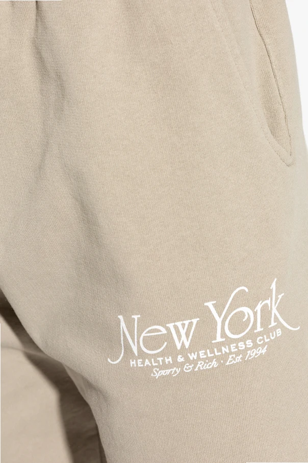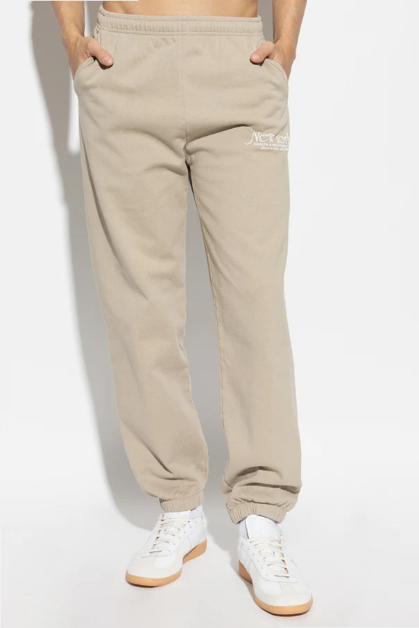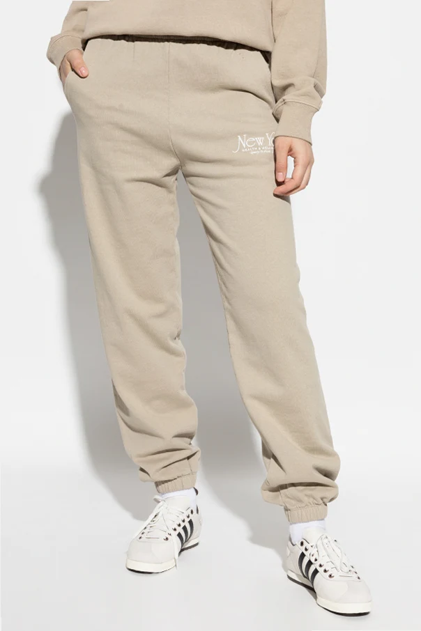 Experience an elevated approach to leisurewear with the NY 94 Sweatpants from renowned American designer Sporty & Rich . Rendered in a refined matte beige hue, these trousers are crafted from sumptuous, thick jersey fabric that exudes both softness and resilience. The regular fit with tapered legs and cuffed hems offers an impeccable blend of comfort and timeless sophistication, making them a perfect choice for all genders. Subtle luxury is accentuated through a distinctive white print on the left thigh, “New York HEALTH & WELLNESS CLUB / Sporty & Rich Est. 1994” , a signature mark that aligns with the label’s heritage of understated exclusivity. A slightly textured surface enhances the tactile allure and visual intrigue of the material, reflecting the brand’s vintage-modern sensibility. Why choose this product? Premium jersey fabric ensures exceptional comfort and lasting shape. Subtle, elegant color palette harmonizes effortlessly with any wardrobe. Unisex design guarantees versatile styling for any occasion. Authentic designer heritage from the iconic Sporty & Rich brand. Collector's print detail renders each piece uniquely desirable.