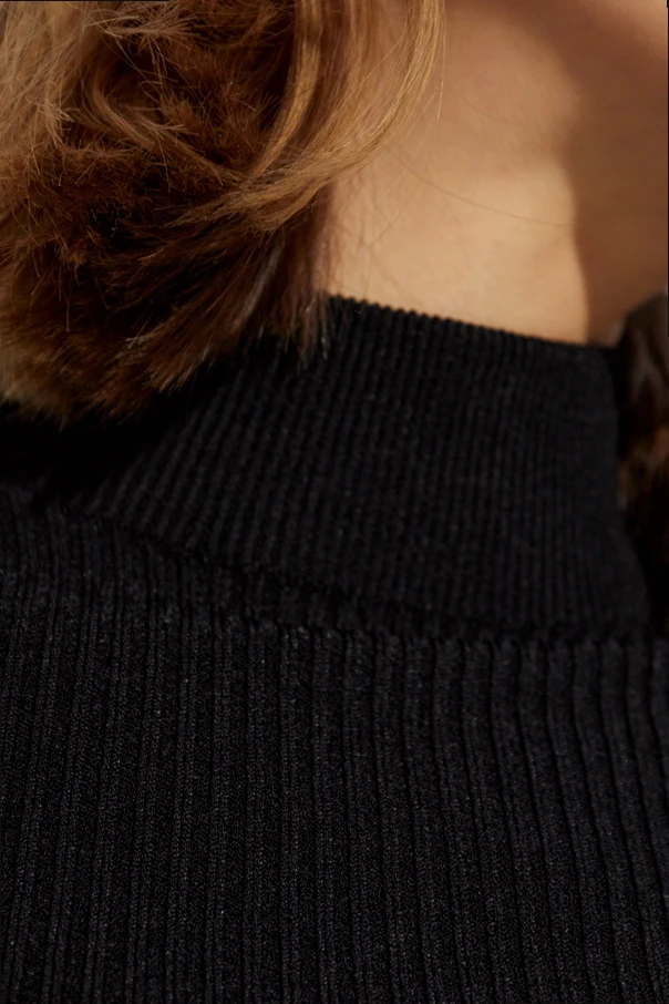 Introducing the Ribbed Body from the exclusive Alaïa collection, a testament to timeless elegance and modern sophistication. This exquisite black body features a simple yet classic silhouette with a round neckline and wide straps , crafted from a luxurious ribbed fabric that enhances its chic appeal.