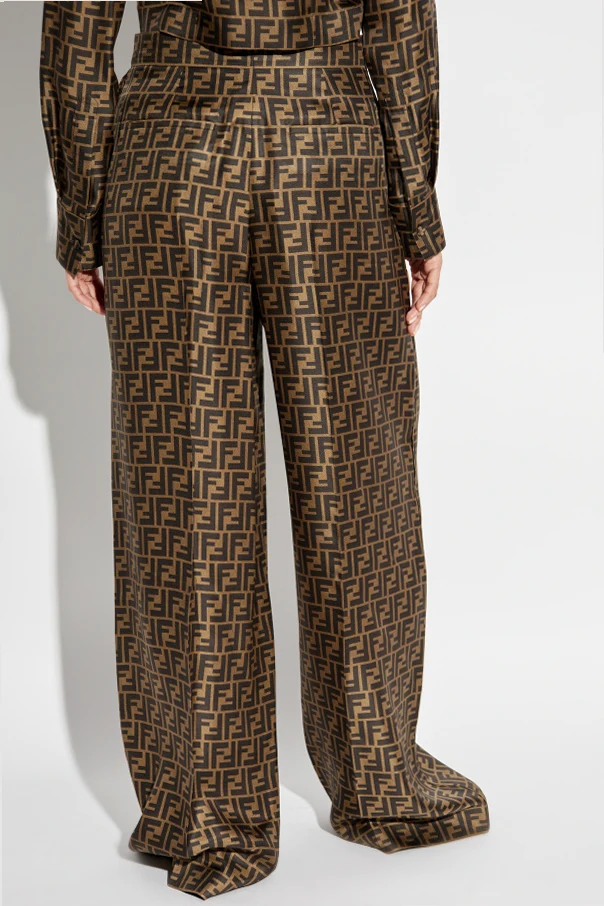 Fendi BROWN Silk trousers with monogram