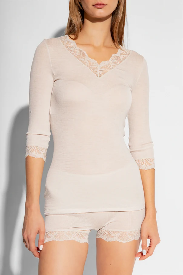 Cream ribbed boxers from Hanro. Made of a merino wool and silk blend, this pair features an elastic waistband and lace trims.