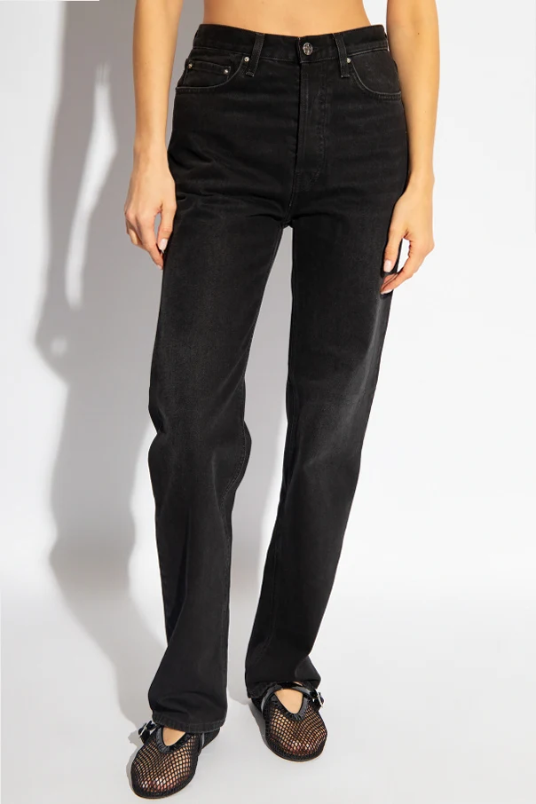 Black jeans from Toteme. Falling with straight legs, this pair features a logo patch on the back, button fastenings and classic five pockets.