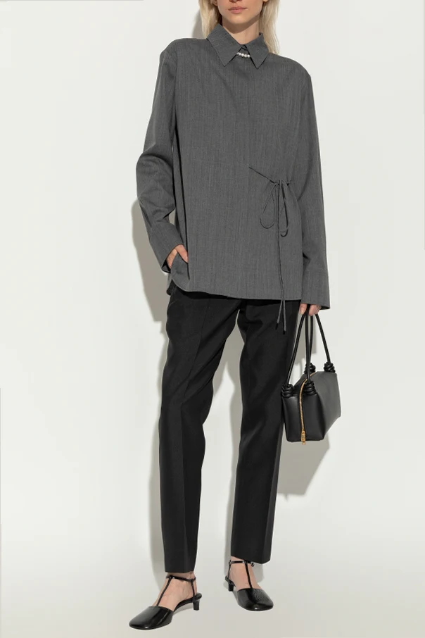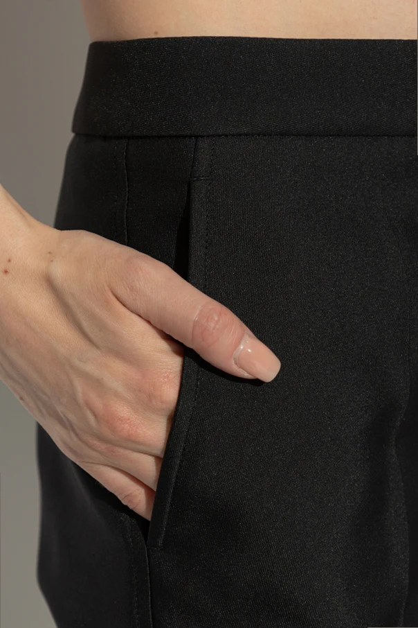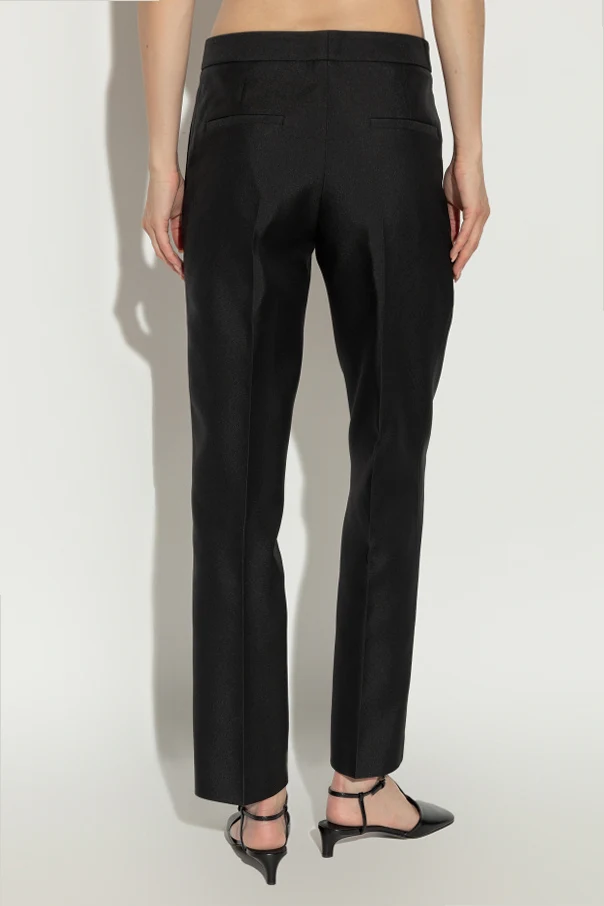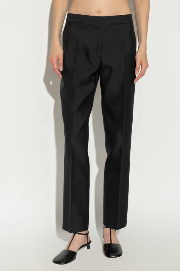 Introducing the epitome of sophistication and timeless style: the JIL SANDER Creased Trousers . Crafted with meticulous attention to detail, these trousers are fashioned from a luxurious blend of poliamid and silk , ensuring not only a smooth and flattering drape but also a comfortable fit for any formal occasion. The trousers feature a classic crease down the front, adding a sharp, formal character to the design, while the sleek black color encapsulates elegance and versatility. The design is completed with a discreet zipper and hook closure, belt loops for added functionality, and two seamlessly integrated back pockets, which enhance the silhouette without compromising the garment's sleek lines. Notably absent are any visible logos or branding on the exterior, underscoring JIL SANDER's commitment to quality and sophistication over overt brand exposure. This choice elevates the trousers, making them a perfect testament to the wearer's refined taste and the understated luxury of the JIL SANDER brand. Why Purchase These Trousers? Exquisite material blend offering both luxury and comfort. Elegant, timeless design with a sharp crease for a formal appearance. Versatile functionality, suitable for various formal settings and styles. Subtle elegance with no external branding, emphasizing quality and design.