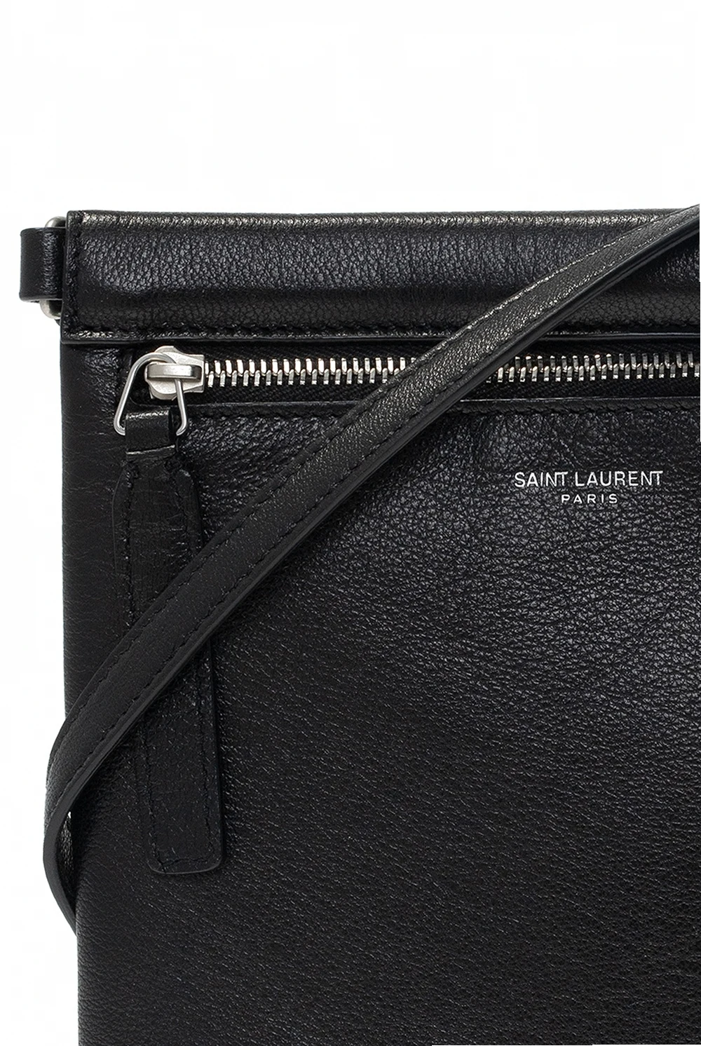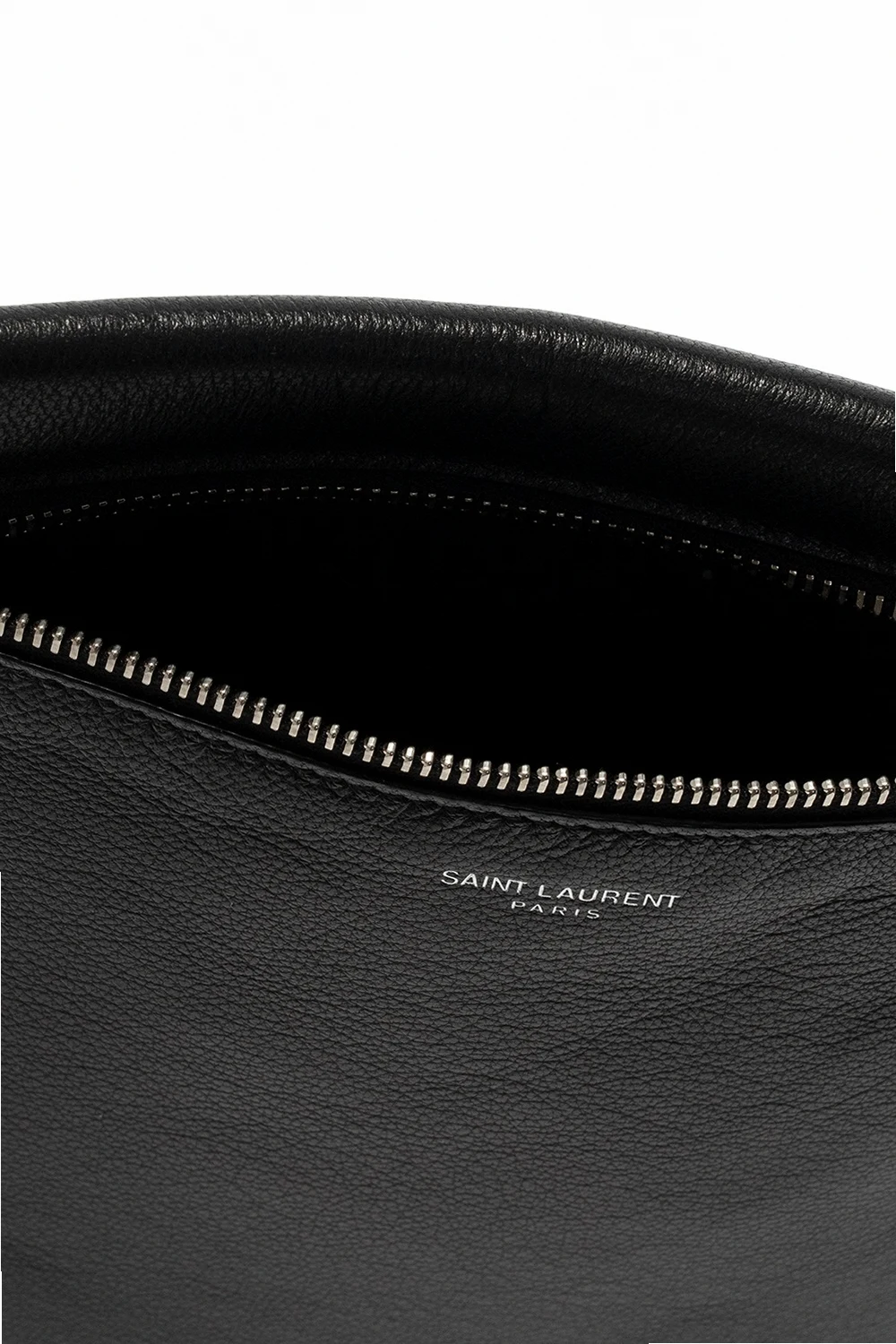 Black 'Sid' shoulder bag from Saint Laurent. Crafted from lamb leather with an embossed silver-tone logo, this design fastens via a zip and employs an adjustable shoulder strap, silver-tone metal hardware and interior with one compartment and one slip pocket.
