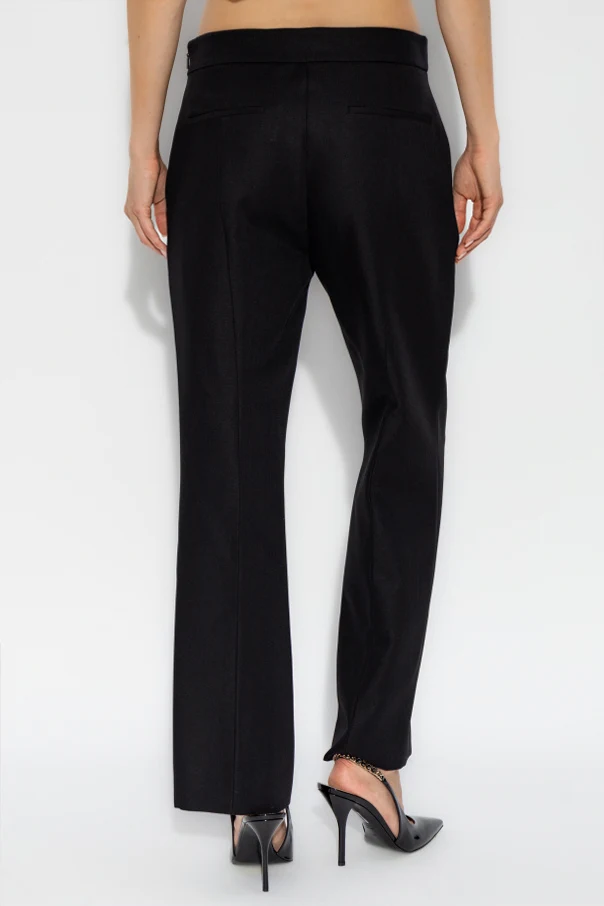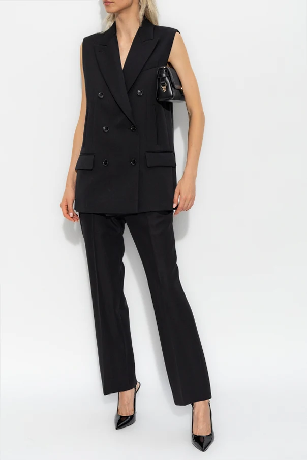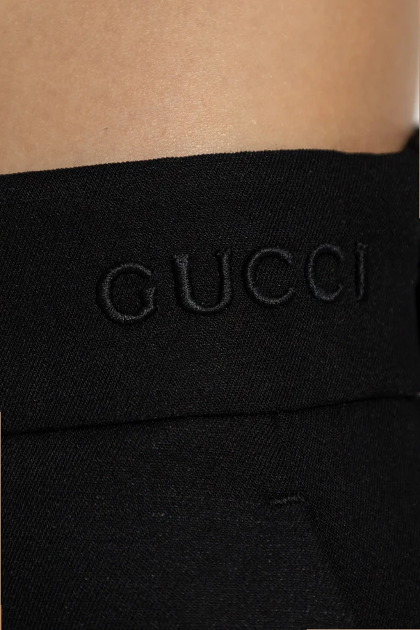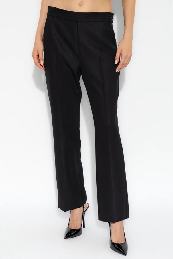 Introducing the epitome of sophistication, the Woolen Formal Trousers by the esteemed designer Gucci . Crafted with impeccable attention to detail, these black trousers are a testament to luxurious craftsmanship and timeless elegance. Meticulously fashioned from the finest wool and mohair blend, these trousers provide unparalleled comfort and an exquisite silhouette. The straight cut, subtly flared legs, and minimalist design make them an ideal companion for any formal ensemble. Distinguished by smooth textures and a sleek finish, these trousers feature a discreetly embroidered Gucci logo on the waistband, exuding an air of prestige. The practical inclusion of side and rear pockets enhances their functionality, while the zip and button fastening ensures a secure fit. Paired effortlessly with a sleeveless blazer and heels, these trousers epitomize formal elegance, making them a versatile addition to any discerning wardrobe. Why Buy This Product? Exquisite blend of high-quality wool and mohair for supreme comfort. Classic straight cut with a subtle flare for a timeless look. Minimalist design with an elegant, embroidered Gucci logo. Functional with side and rear pockets for added convenience. Secure zip and button closure for a comfortable fit. Versatile black color, perfect for various formal occasions.