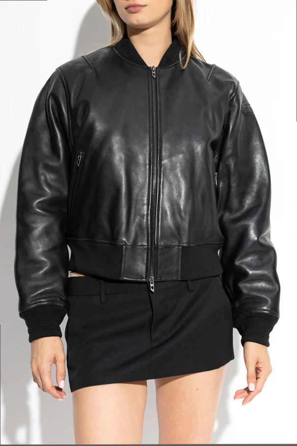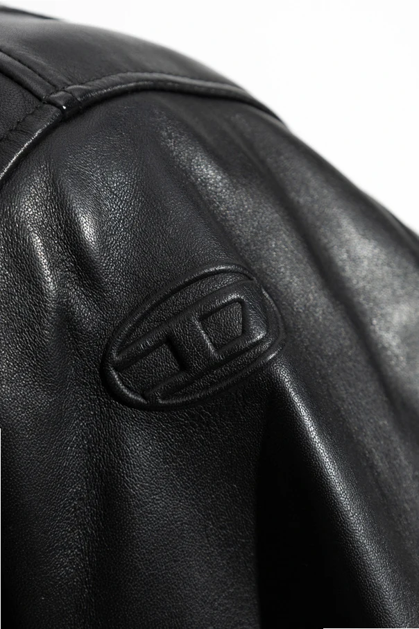 Introducing the L-ILAN A14564 , a luxurious leather jacket from the prestigious fashion house Diesel . This exquisite piece, crafted from 100% premium black leather, exudes an aura of sophistication and timeless elegance. The jacket features a classic, streamlined silhouette with subtly rounded shoulders, ensuring a flattering fit. It is equipped with a full-length, front zipper closure, adding to its modern yet refined appeal. The practical design includes two side pockets, each adorned with a sleek zipper, enhancing both functionality and aesthetic charm. A distinct embossed Diesel logo on the left shoulder signifies the authenticity and elite craftsmanship of the brand. The jacket is finished with elastic ribbed cuffs and hem, providing a comfortable, tailored fit that accentuates its high-quality construction. Inside, meticulous finishing details underscore its superior craftsmanship. This versatile jacket seamlessly blends a sporty edge with a polished, elegant style, making it an essential addition to any wardrobe. Perfect for both casual and formal occasions, it embodies the quintessential Diesel spirit—where luxury meets practicality. Why Choose This Product? Exquisite Material: Made from 100% premium black leather for unmatched durability and luxury. Functional Design: Features two side pockets with zippers for added convenience. Distinctive Branding: Embossed Diesel logo ensures authenticity and style. Comfort and Fit: Elastic ribbed cuffs and hem provide a snug, tailored fit. Versatile Style: Perfect for both casual and formal settings.