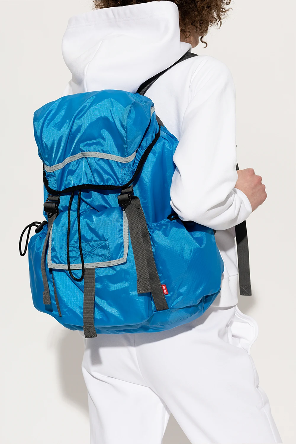 Blue ‘ROGUE’ backpack from Diesel. Fastened with snaps, this design features three frontal pockets, adjustable shoulder strap and a drawstring interior with a slip pocket.