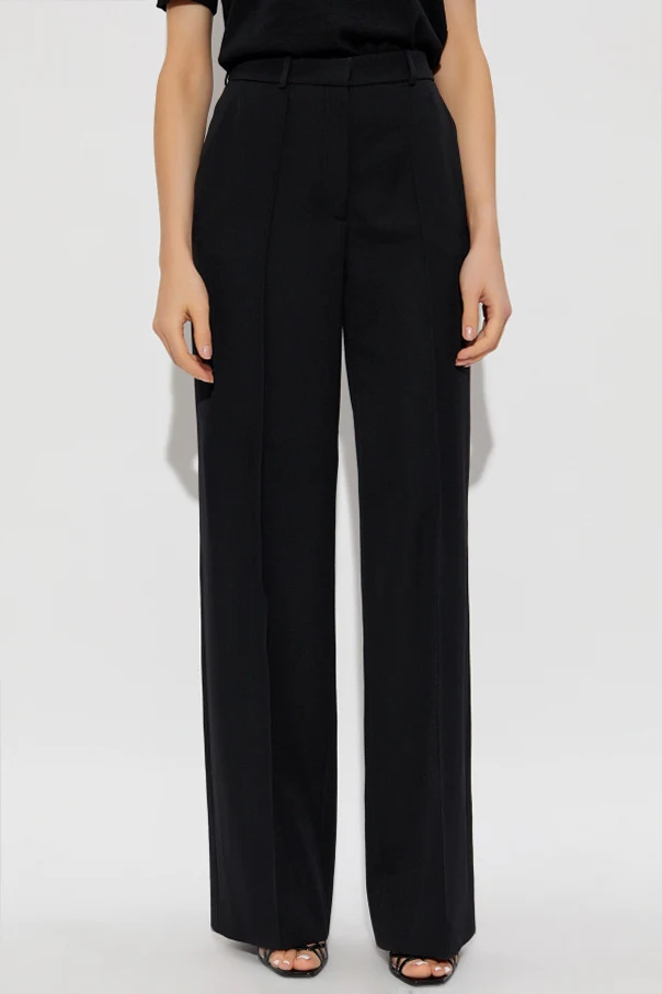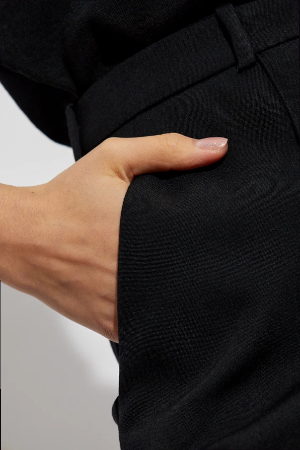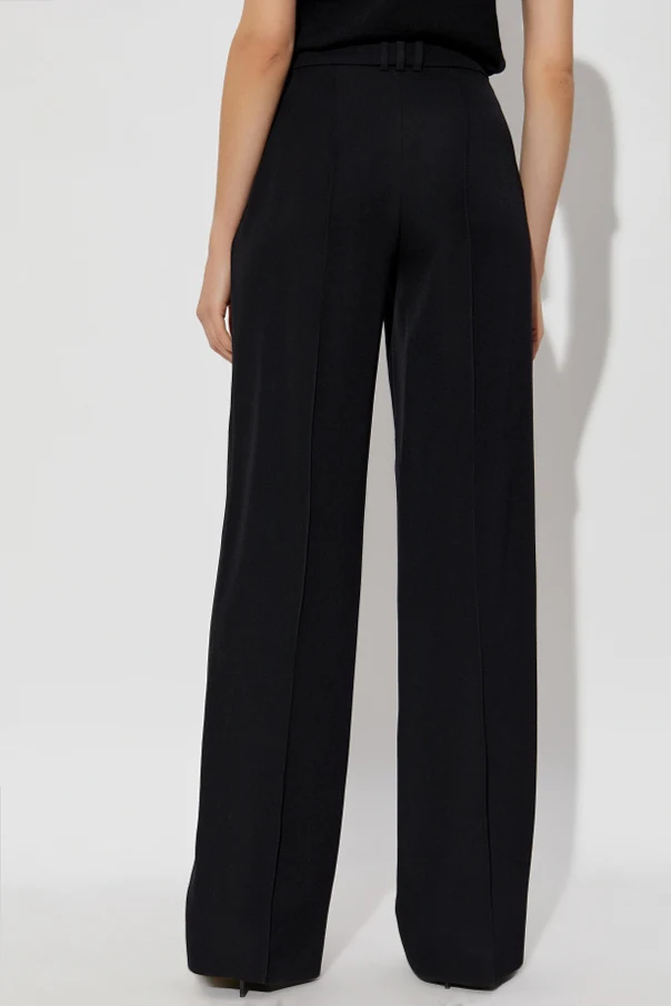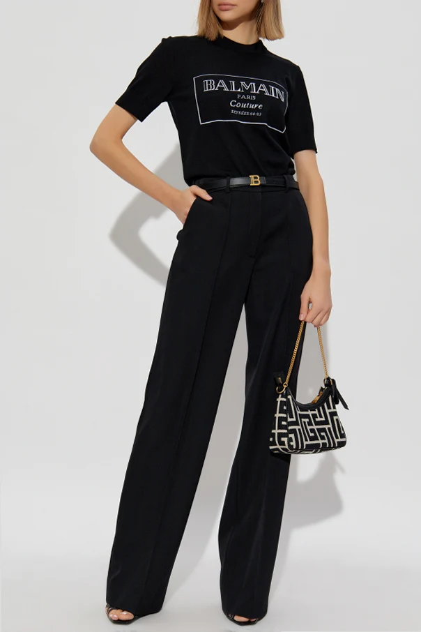 Discover unparalleled sophistication with our Wool Creased Trousers , an epitome of elegance and finesse. Crafted from superior wool, these black trousers exude a formal allure, ideal for the discerning woman. The classic cut with straight, slightly flared legs and a distinct crease defines a timeless silhouette, ensuring you stand out in every setting. The trousers feature a waistband with belt loops for a customizable fit, alongside front pockets that enhance their practicality. Secured with a zip, hook, and button closure, they promise both style and functionality. Designed by the illustrious Balmain , one of France's most prestigious fashion houses, these trousers embody the brand's legacy of creating youthful, extravagant lines. Paired effortlessly with a logo-embellished top and a chic handbag, they highlight the luxury and exclusivity synonymous with Balmain. Why Choose This Product? Crafted from high-quality wool for an elegant finish. Distinct crease for a formal, polished look. Customizable fit with belt loops at the waist. Renowned Balmain design for a touch of luxury.