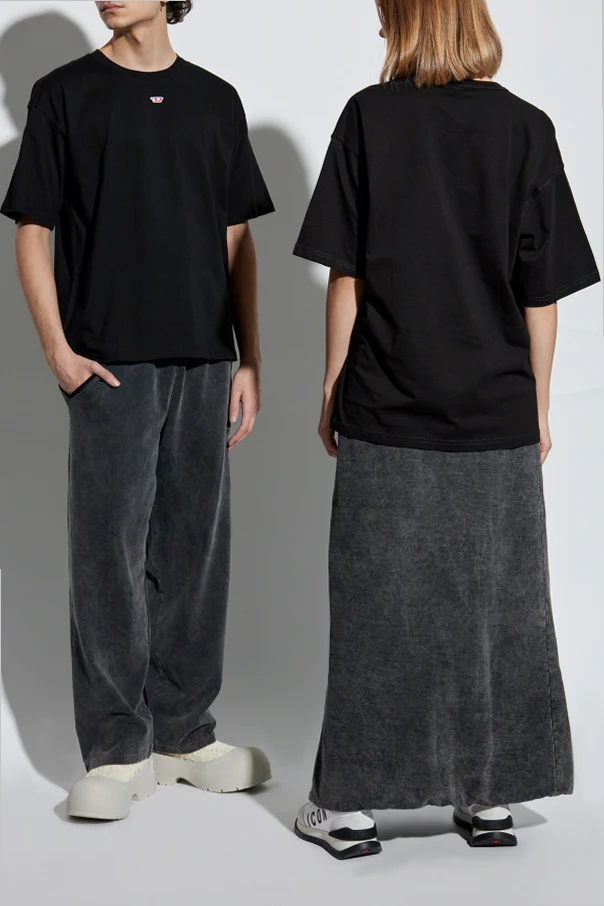 Introducing the T-BOXT-D , a black T-shirt from the prestigious Diesel collection. This T-shirt is a testament to timeless elegance, featuring a classic cut with short sleeves and a round neckline. Adorned with a subtle yet striking embroidered logo in red and white on the chest, it exudes sophistication. Crafted from smooth, premium cotton, the T-BOXT-D offers both comfort and refined style. Its versatility is showcased in styling options, easily paired with a jacket and jeans for a chic ensemble. Diesel, an iconic Italian brand founded in 1978 by Renzo Rosso, remains a global leader in fashion under the creative direction of Glenn Mertens. Renowned for high-quality jeans and exclusive accessories, Diesel epitomizes unparalleled craftsmanship. Why choose this product? Exceptional quality and comfort with 100% cotton fabric Elegant design with a distinctive embroidered logo Versatile style suitable for various occasions Part of Diesel's exclusive collection