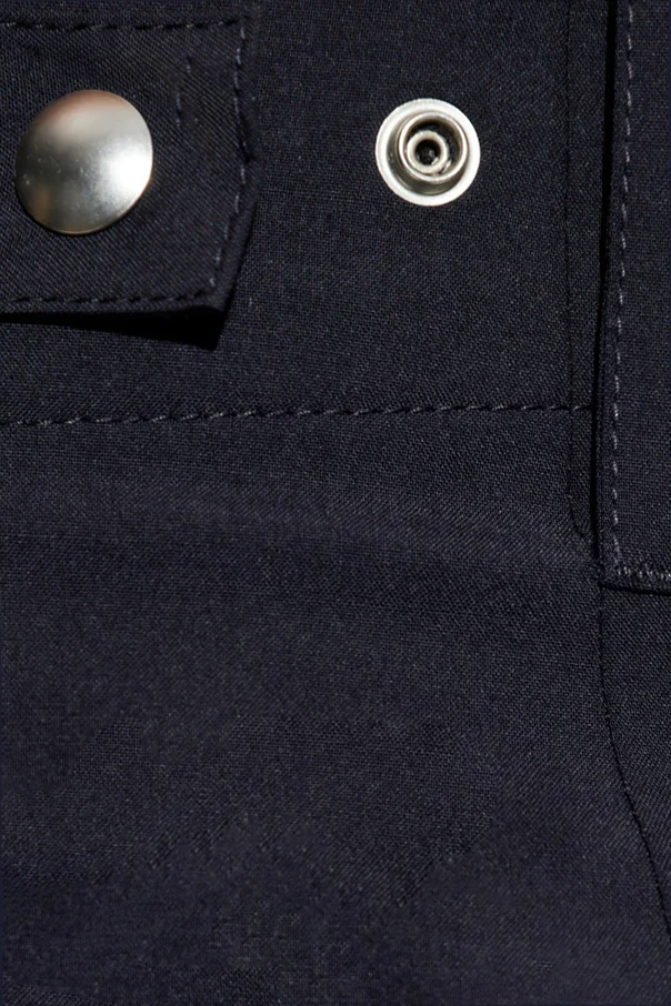 Introducing the Bottega Veneta Cargo Pants —an exquisite blend of elegance and utility. Designed with a straight cut and wide-leg silhouette , these pants epitomize the cargo style with their iconic side pockets. Crafted from 100% wool , the fabric offers a smooth and luxurious feel, ensuring unparalleled comfort. In a deep shade of navy or black , these pants feature side and back pockets with flaps, enhanced by subtle metal snaps for a touch of sophistication. The waistband is adorned with belt loops, allowing for personalized accessorizing. Secured with a zipper, clasps, and button , they promise a refined finish. Born from the illustrious house of Bottega Veneta , renowned for revolutionizing traditional craftsmanship since 1966, these pants are more than a garment—they're a statement of style and heritage. Why Choose This Product? Luxurious 100% wool fabric for ultimate comfort. Functional design with iconic cargo pockets. Versatile dark color suitable for various occasions. Refined finishing with metal snap details. Designed by the esteemed Bottega Veneta.