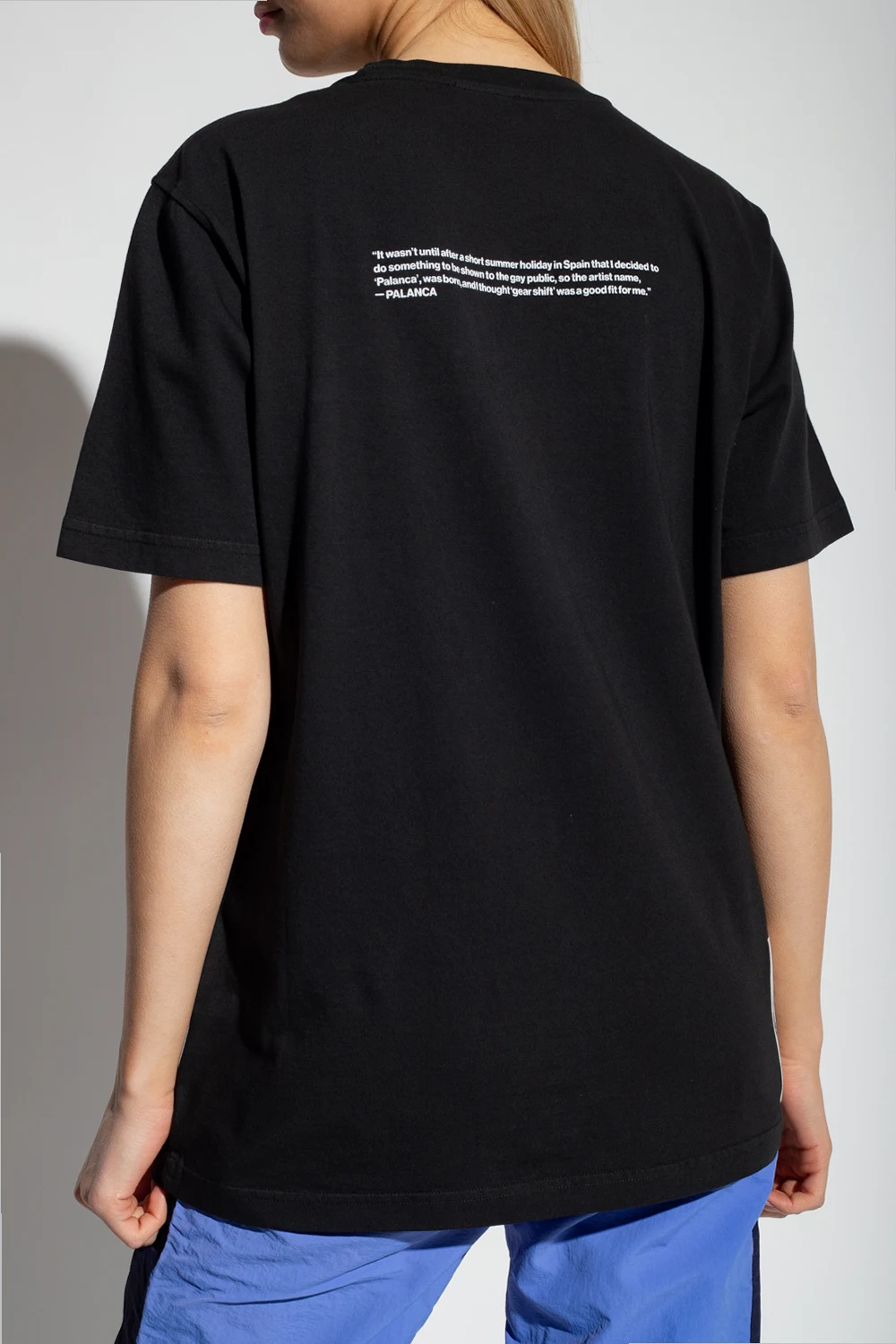 Black ‘PR-T-JUST-P6’ crewneck T-shirt from Diesel, the AllTogether Pride capsule collection. Made of cotton in partnership with Tom of Finland Foundation (ToFF), this short sleeve design features a multicolored logo print and the capsule's patch on the back and a quote from the artist Palanca.