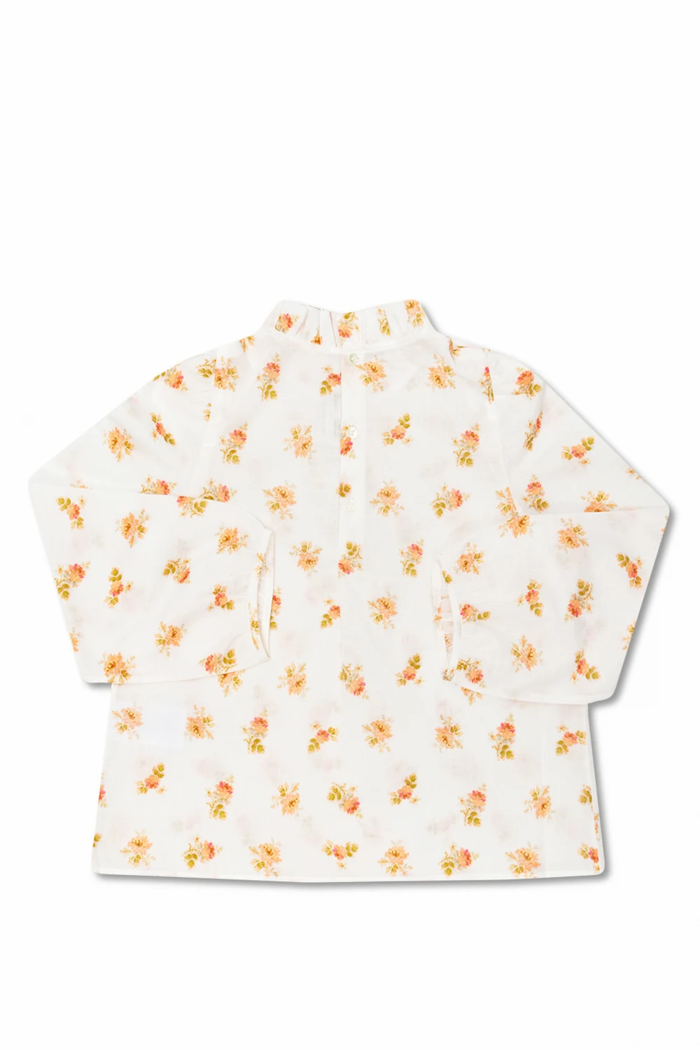 White top from Bonpoint. Made of cotton, this garment features buttons, multicolored floral motif, band collar and long sleeves.