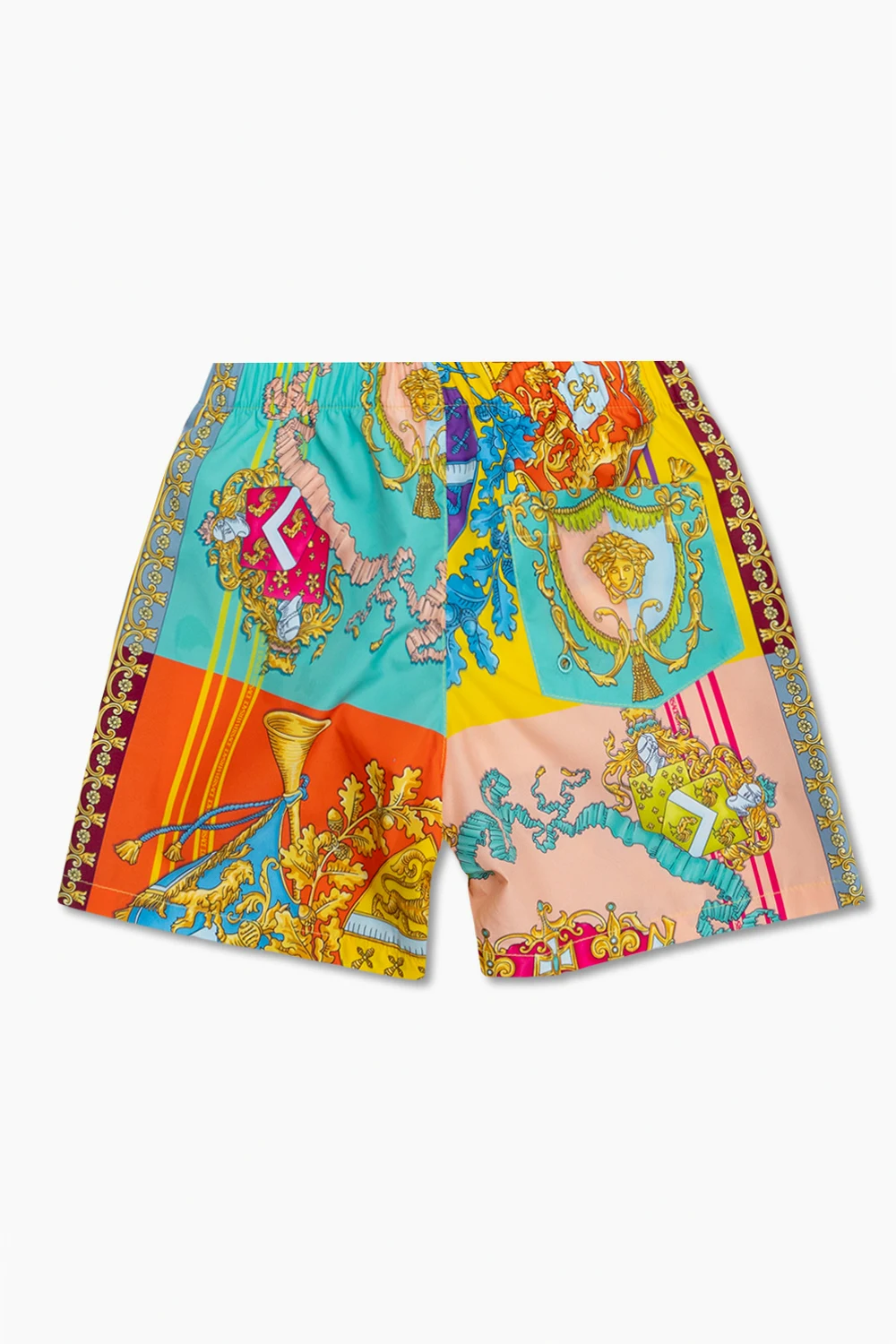 Multicolored swim shorts from Versace Kid. This pair features an elastic waistband, Royal Rebellion pattern and back pocket.