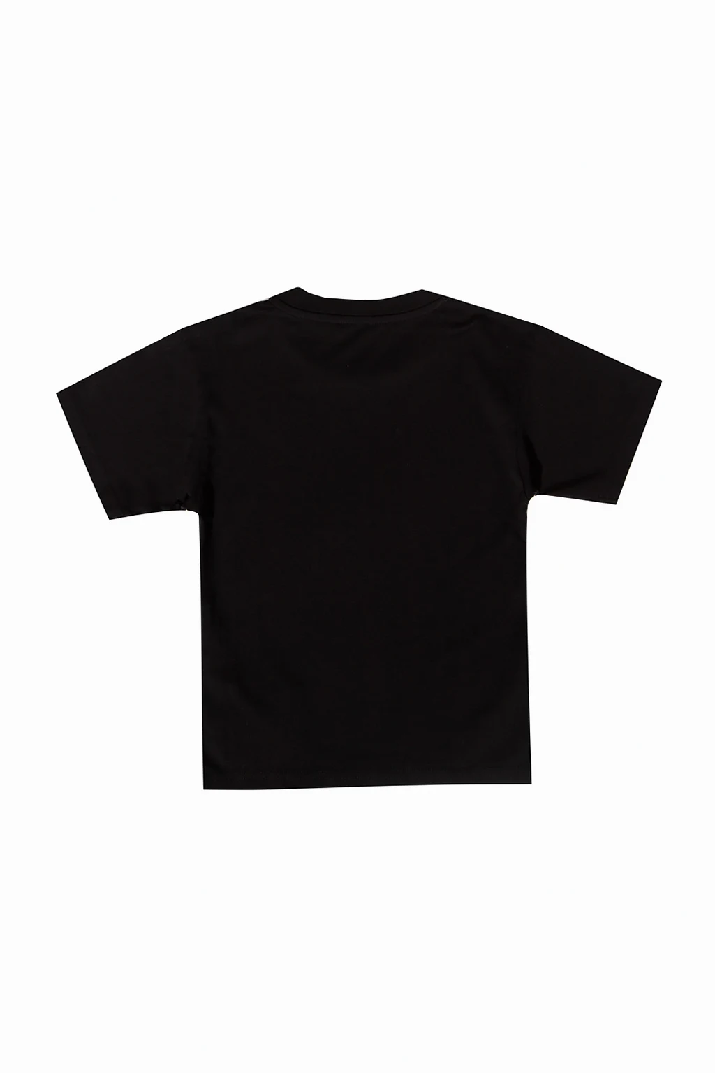 Black crewneck T-shirt from Balenciaga Kids. Crafted from cotton, this short sleeve design is decorated with a white logo print.