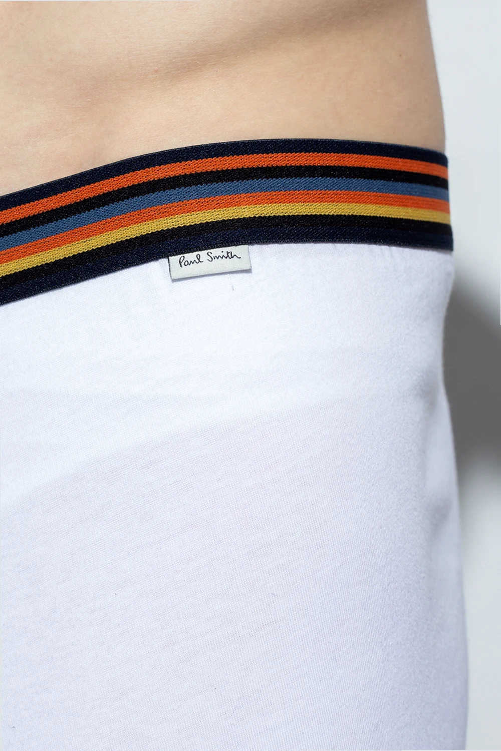 White boxers from Paul Smith. Crafted from organic cotton, this garment features a multicolored elastic waistband and a logo patch in black and white.