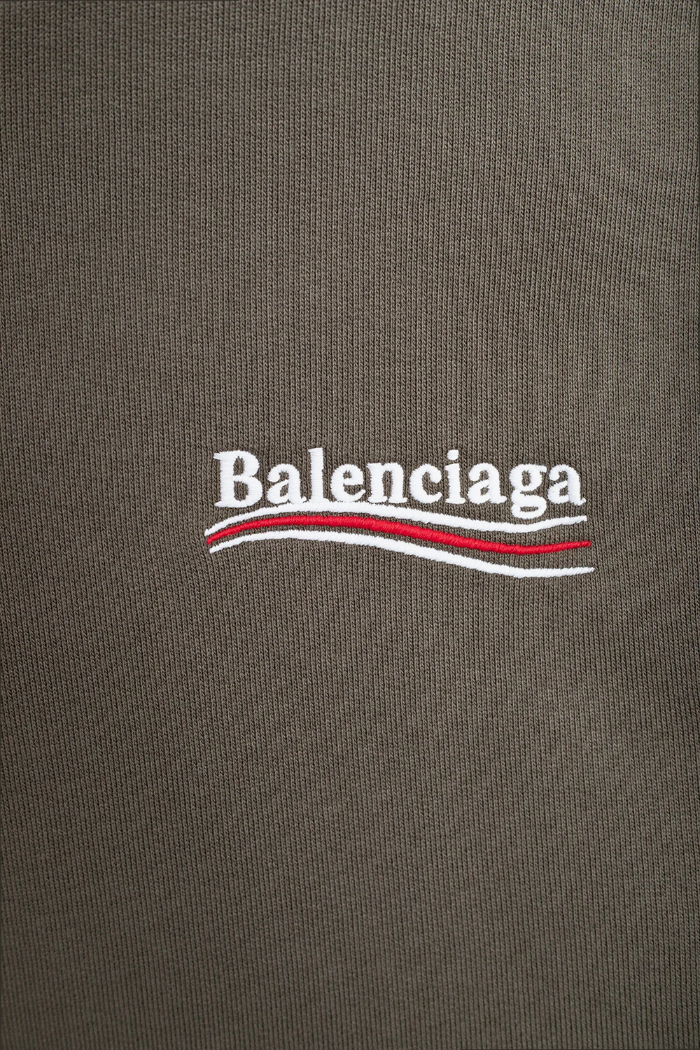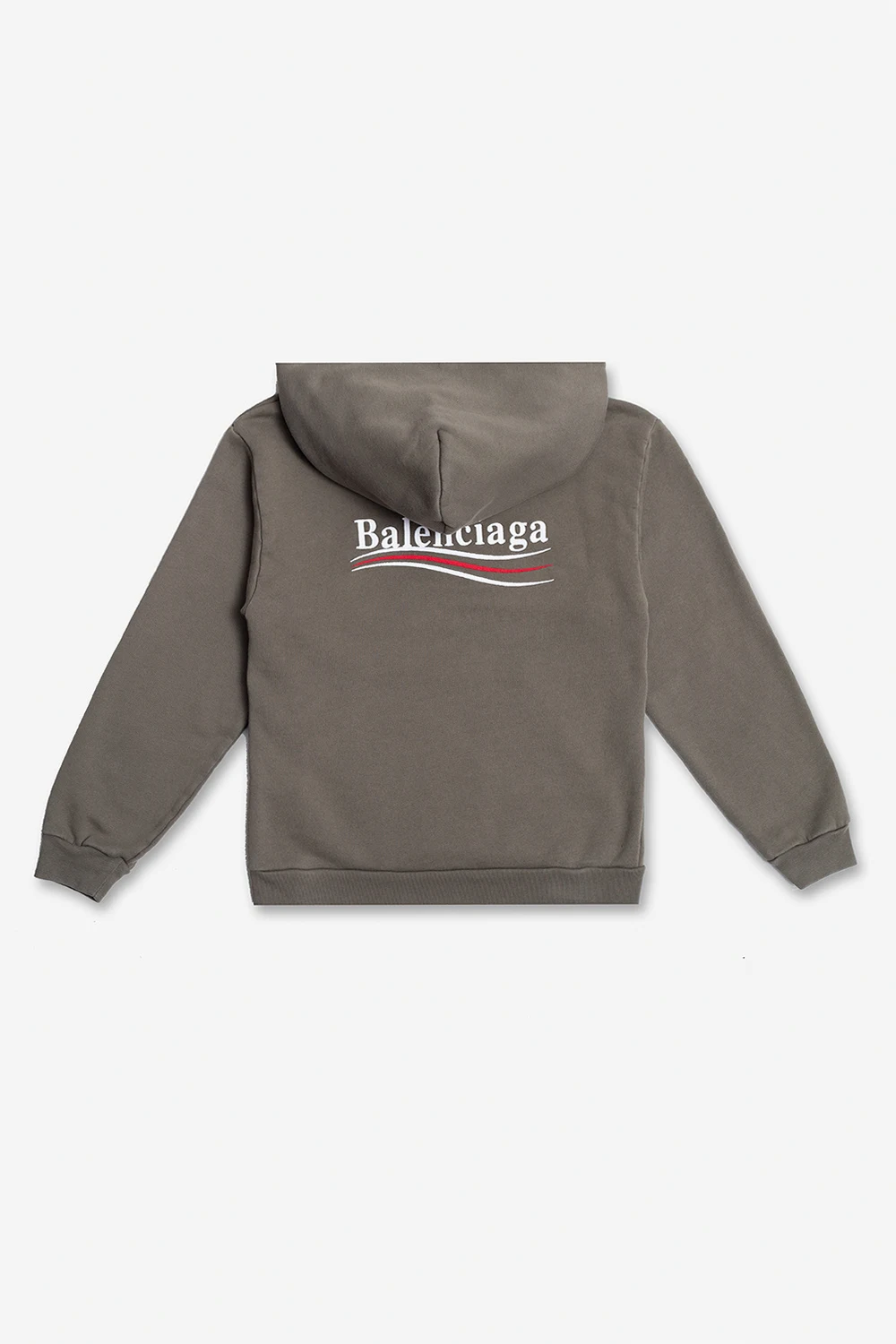 Khaki hoodie from Balenciaga Kids. Made of cotton, this design features a white and red logo detail, front pocket and ribbed trims at the hem and cuffs.