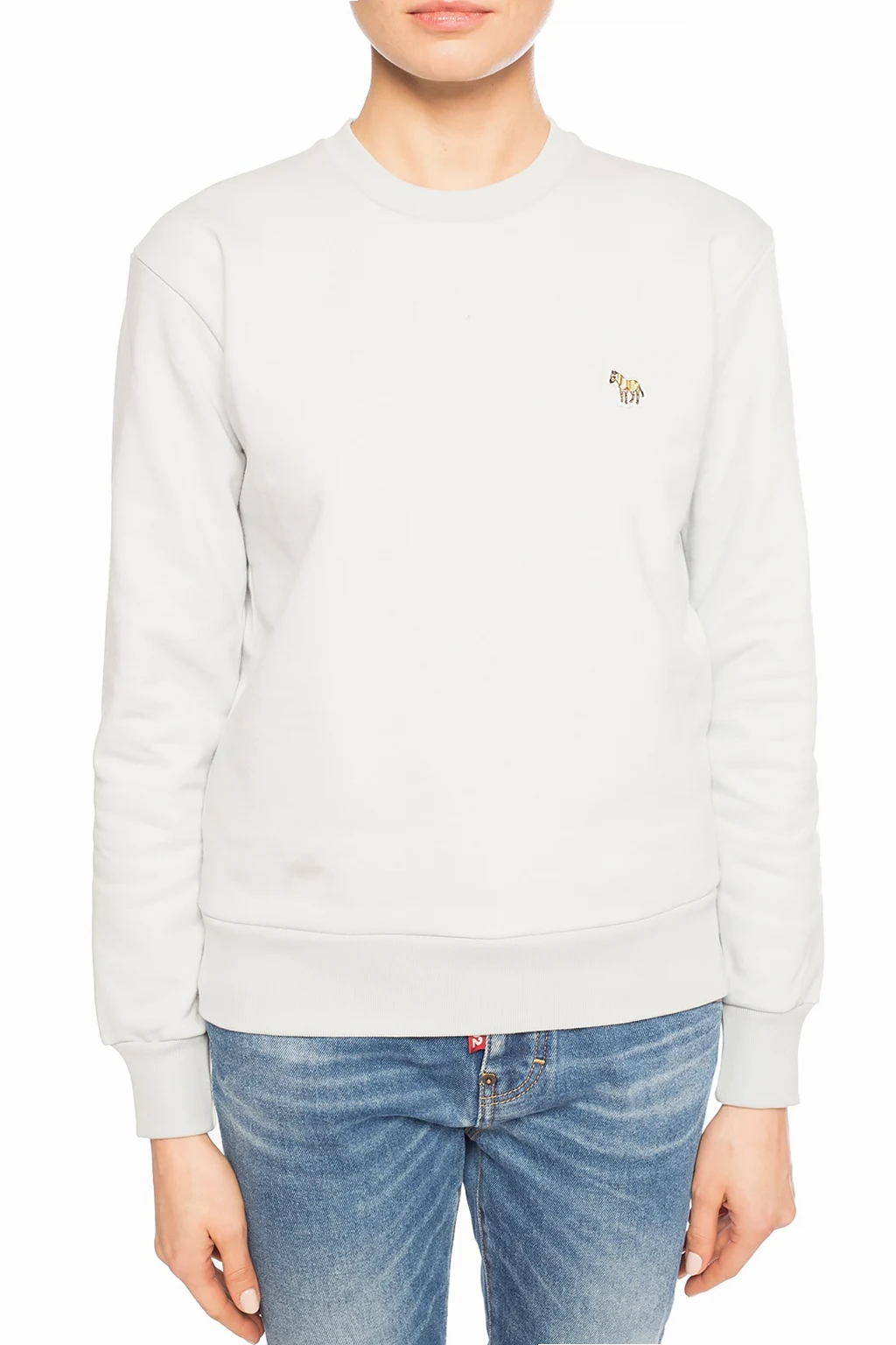 Grey crewneck sweatshirt from PS Paul Smith. Made of cotton. Embellished with a colourful zebra patch embroidered on the chest. Features a ribbed bottom hem and cuffs.