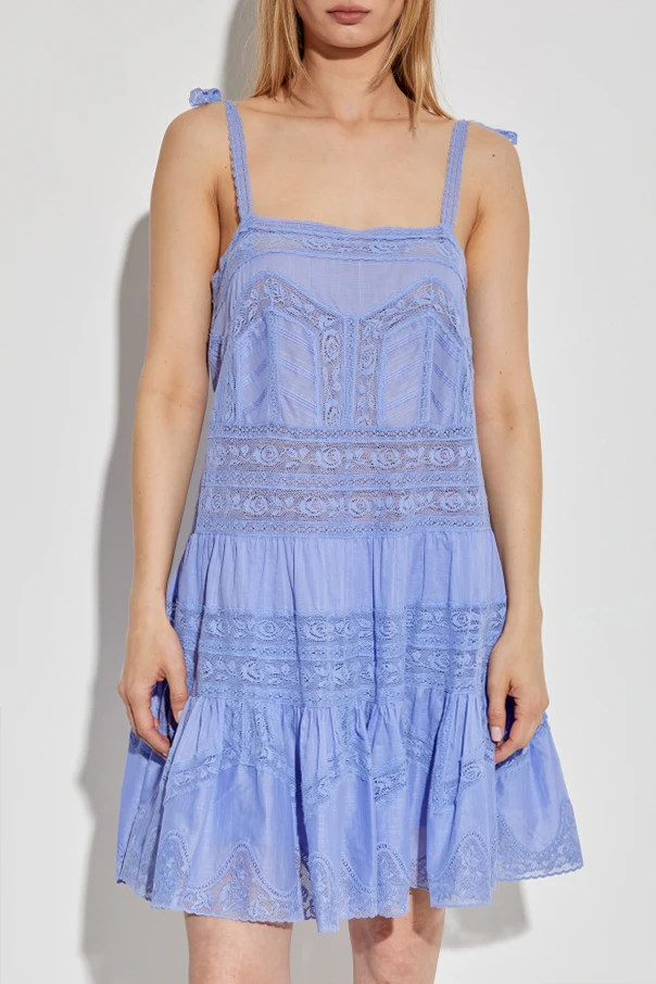 Kleid mit Spitzeneinsätzen von Zimmermann ist ein Modell, das raffinierte Weiblichkeit mit der Leichtigkeit sommerlicher Tage auf elegante Weise verbindet. Der kurze, dezent ausgestellte Schnitt mit markanter Abtrennung unterhalb der Brust und auf Hüfthöhe betont die schlanke Silhouette und verleiht ihr Anmut und Frische.