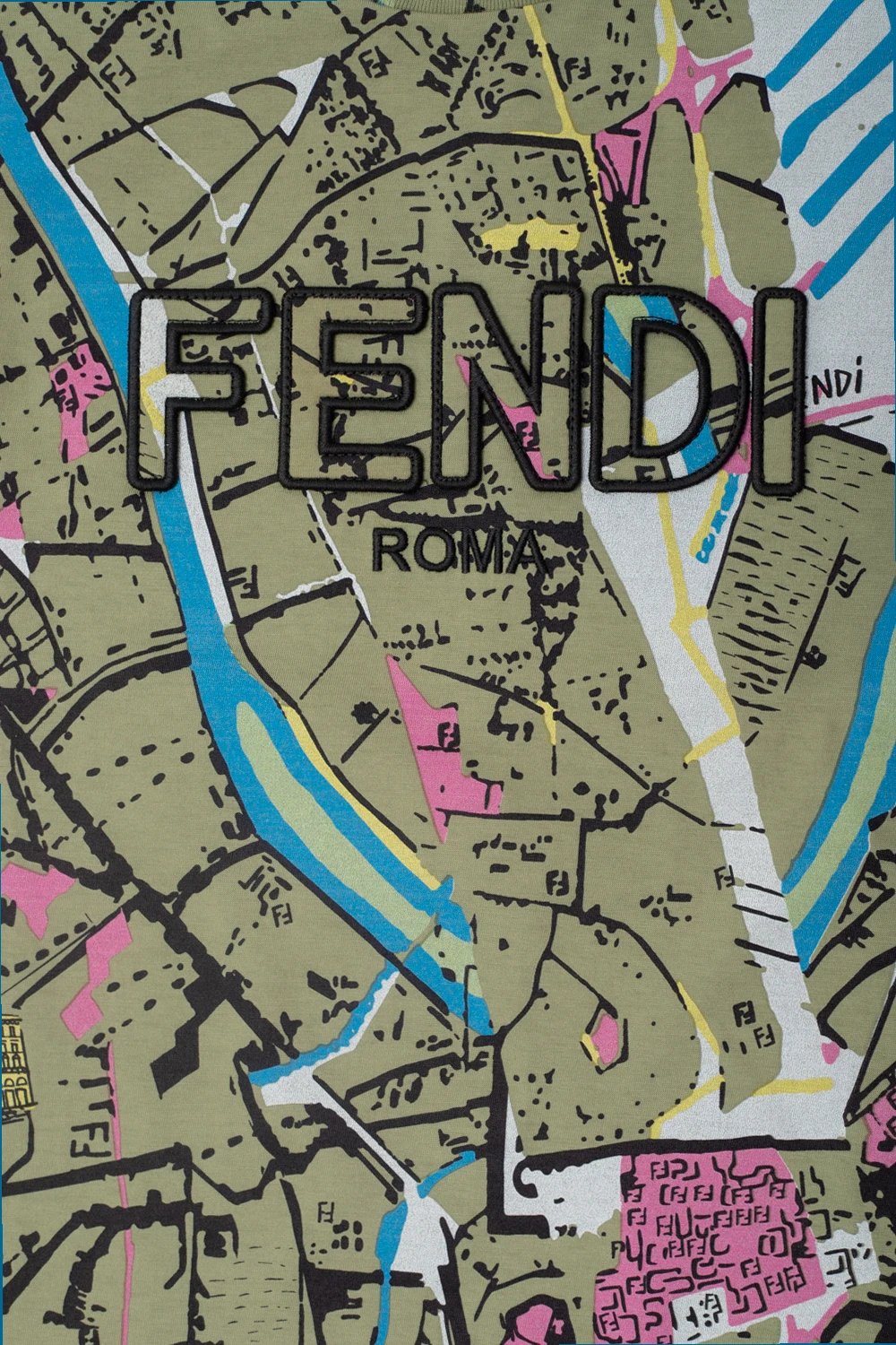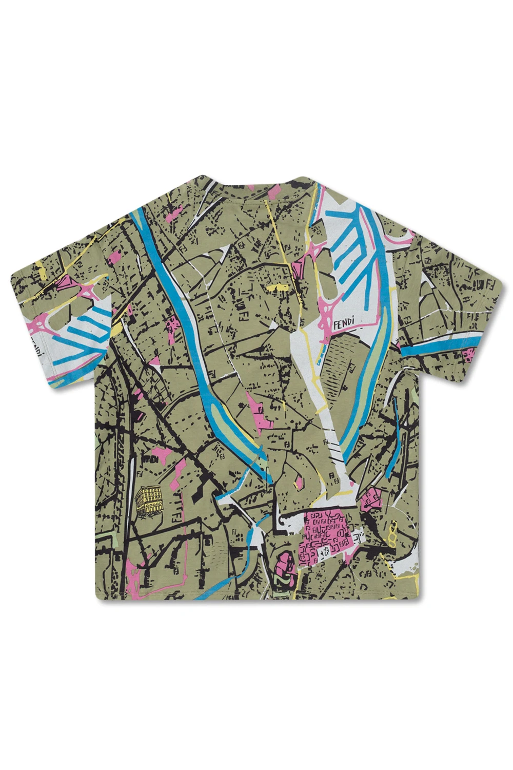 Green T-shirt from Fendi Kids. Crafted from cotton, this short sleeve design features a multicolored Fendi Roma patch and ribbed crew neck.