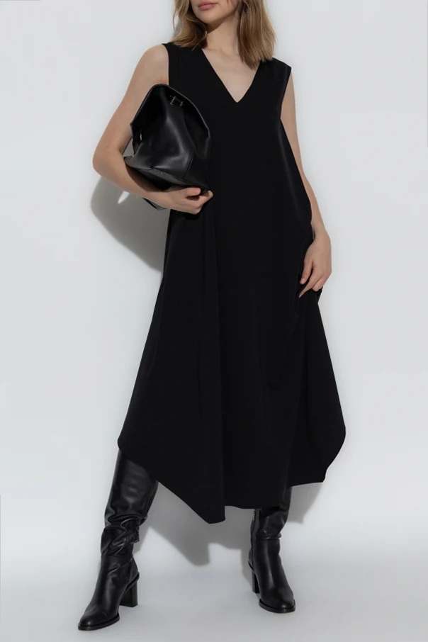 Das Kleid „Sasia” von Sportmax ist die Quintessenz moderner Eleganz und vereint harmonisch die Tradition der italienischen Schneiderkunst mit innovativem Design. Die lässige, leicht ausgestellte Midilänge, akzentuiert durch deutlich verlängerte Seiten und eine geometrisch gestaltete Saumlinie, kreiert einen äußerst zeitgemäßen Look, der zugleich eine subtile und vielseitige Silhouette bewahrt.