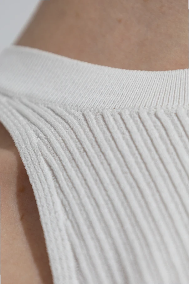 Top „Tenda” des renommierten Modehauses Max Mara ist die Quintessenz moderner Eleganz. Die figurbetonte, ärmellose Passform und die tief ausgeschnittenen Schultern im Halter-Stil setzen die Silhouette mit außergewöhnlicher Finesse in Szene und betonen die Schulterlinie. Seitlich abgeschrägte Kanten sowie das einheitliche, gerippte Strickmuster verleihen dem Gewebe eine unverwechselbare Struktur und subtile Elastizität.